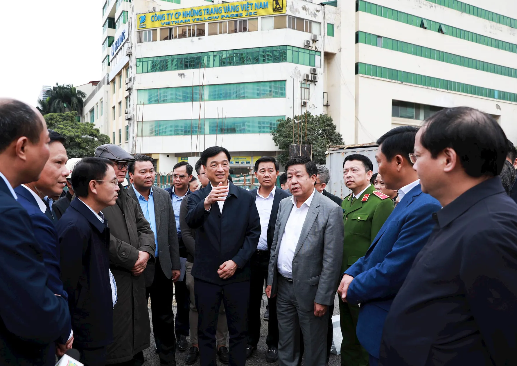 Bí thư Thành ủy Hà Nội Nguyễn Duy Ngọc và các đồng chí lãnh đạo thành phố Hà Nội kiểm tra tiến độ thi công tuyến đường Vành đai 1 đoạn Hoàng Cầu - Voi Phục.