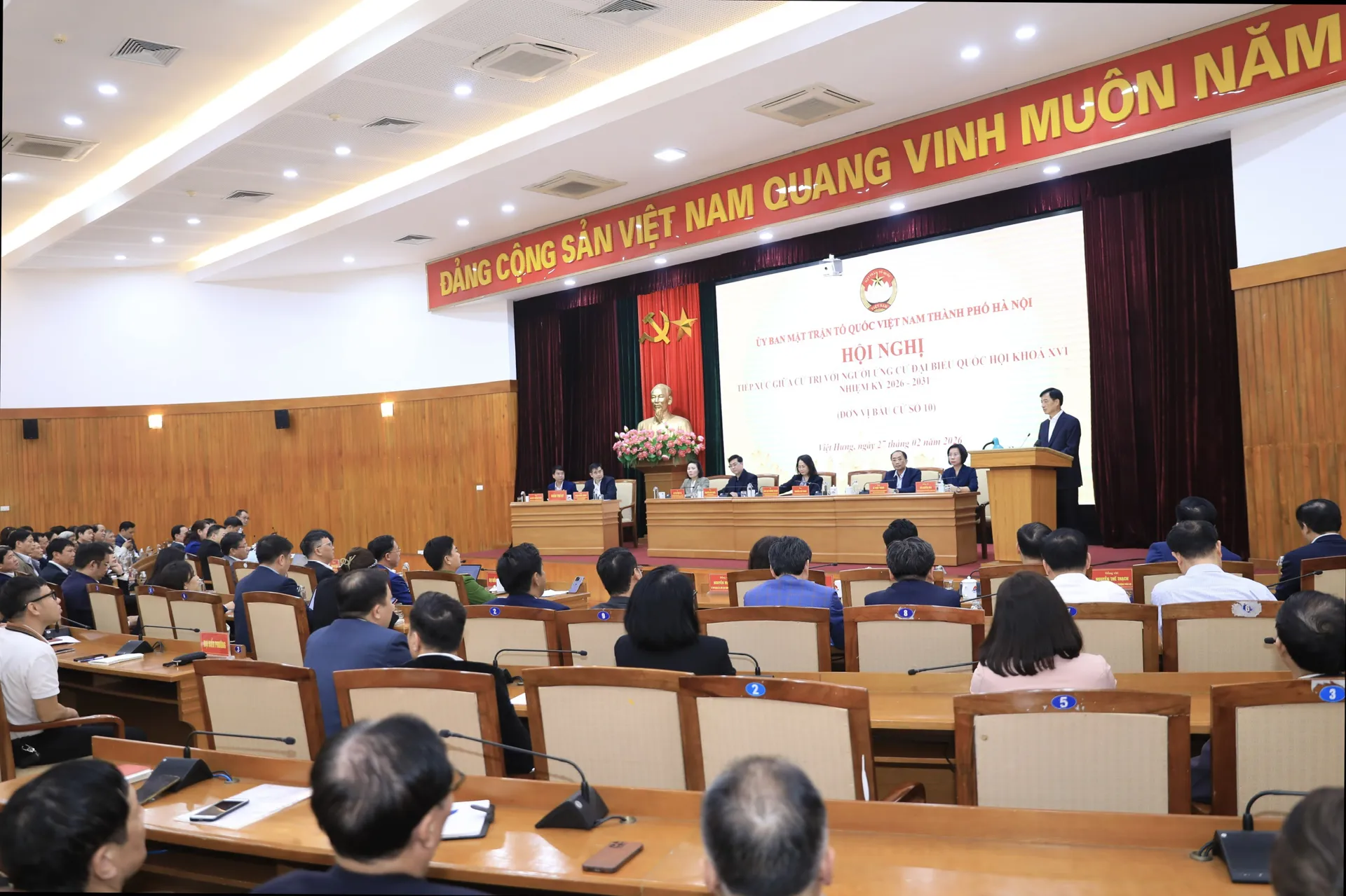 Mở đầu hội nghị, cử tri đã nghe tiểu sử tóm tắt của người ứng cử đại biểu Quốc hội khóa XVI (nhiệm kỳ 2026-2031) tại Đơn vị bầu cử số 10 thành phố Hà Nội.
