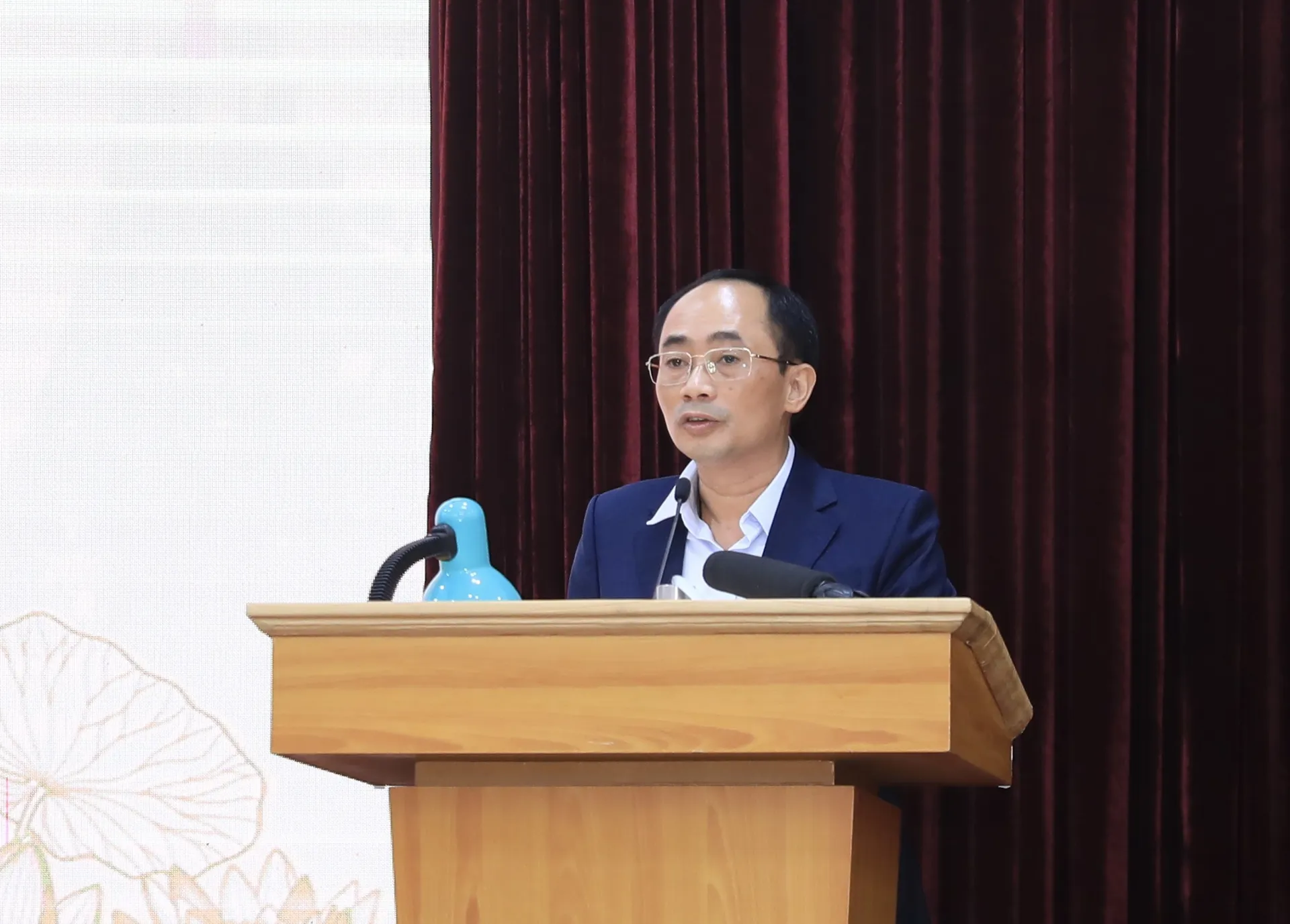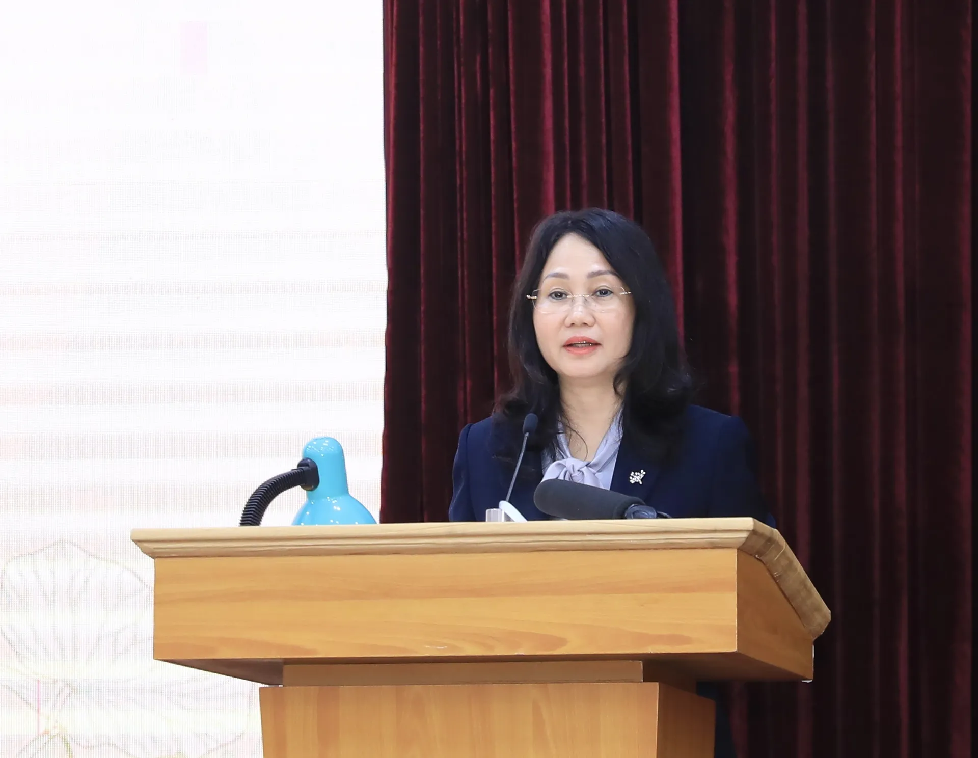 Ủy viên Trung ương Đảng, Thứ trưởng Thường trực Bộ Văn hóa, Thể thao và Du lịch Lâm Thị Phương Thanh trình bày chương trình hành động tại hội nghị. Ảnh: Quang Thái