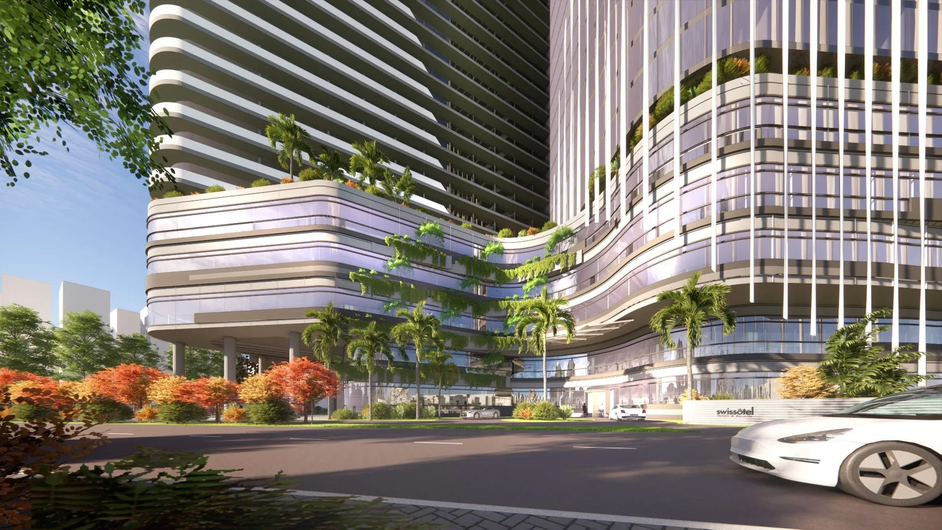 Không chỉ gây ấn tượng bằng mặt ngoài độc đáo, các kiến trúc sư còn tính toán kỹ tới hướng gió, hướng đất đảm bảo công năng tòa nhà, gia tăng trải nghiệm người dùng. Nhờ sự tính toán tỉ mỉ, mỗi vị trí trong các tòa tháp đều nhận bức xạ nhiệt thấp nhất. Luồng gió tự nhiên được tận dụng thông gió cho cả tòa nhà. Quảng trường trung tâm nơi dòng người tập trung được các tòa tháp che kín, đảm bảo nhiệt độ dễ chịu, khuyến khích hoạt động ngoài trời.