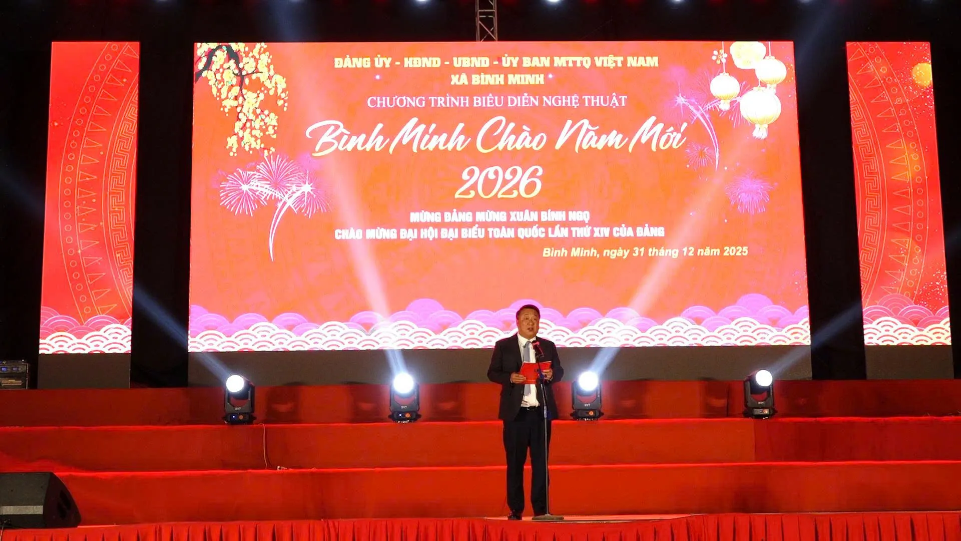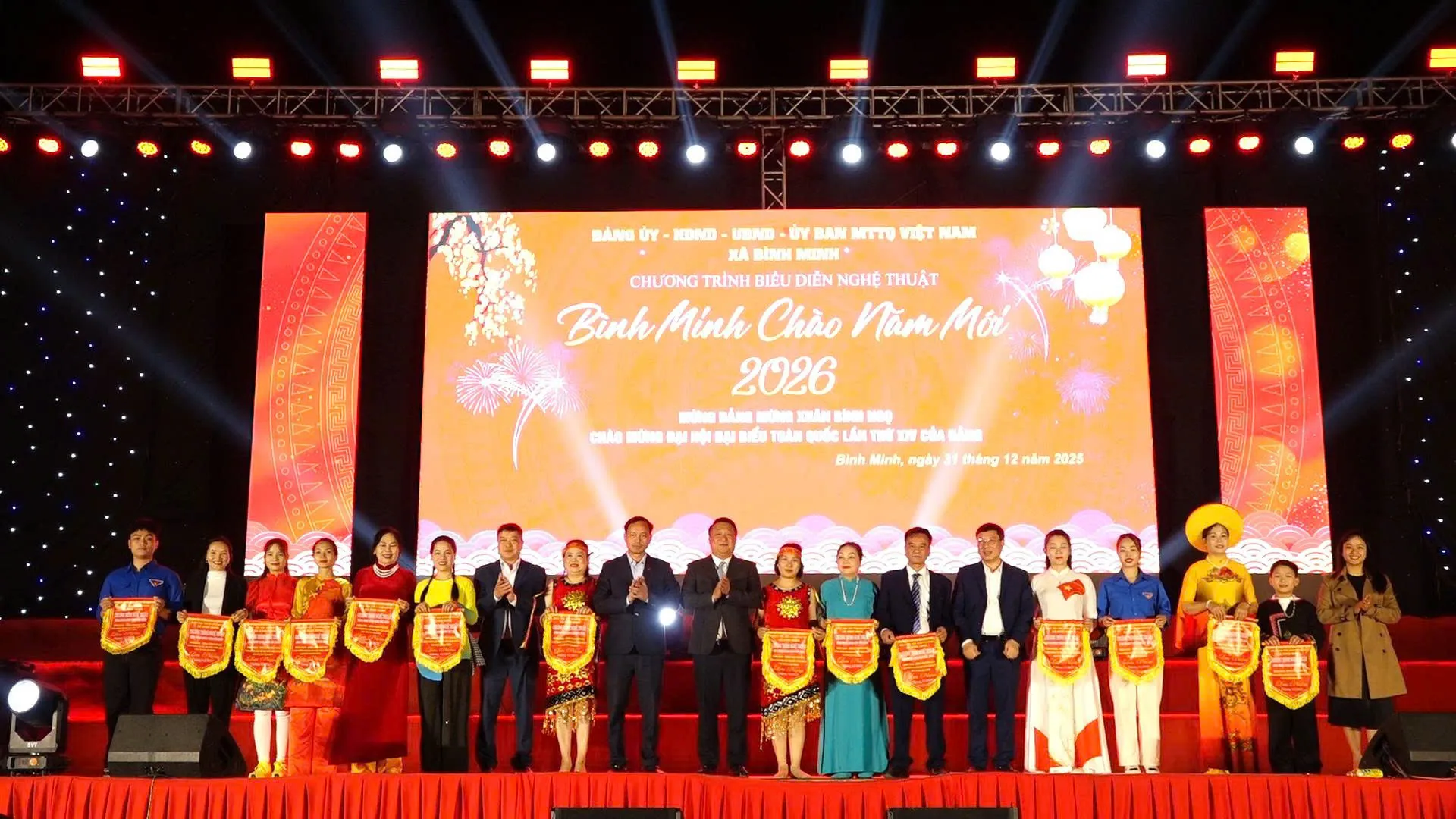 Tối 31/12, Đảng uỷ - HĐND – UBND – Uỷ ban MTTQ xã Bình Minh tổ chức Chương trình nghệ thuật COUNTDOWN đón năm mới 2026 với chủ đề “Bình Minh rực sáng – Niềm tin vững bước – Khát vọng vươn xa”.