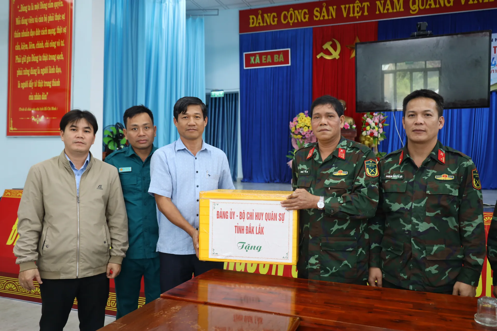 Chỉ huy trưởng Bộ CHQS tỉnh Đắk Lắk, đại tá Niê Ta tặng quà cho địa phương xã Ea Ly.