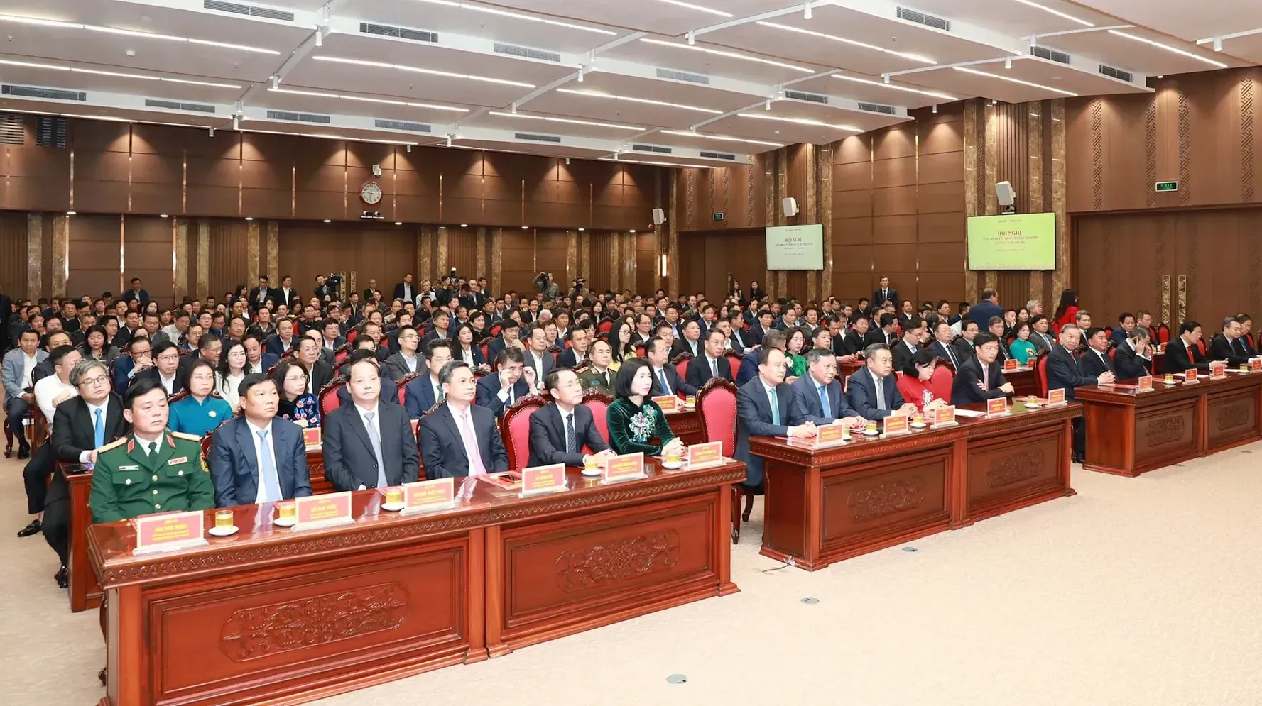 Tổng Bí thư Tô Lâm cùng các đồng chí lãnh đạo Đảng, Nhà nước và thành phố Hà Nội tham dự hội nghị.