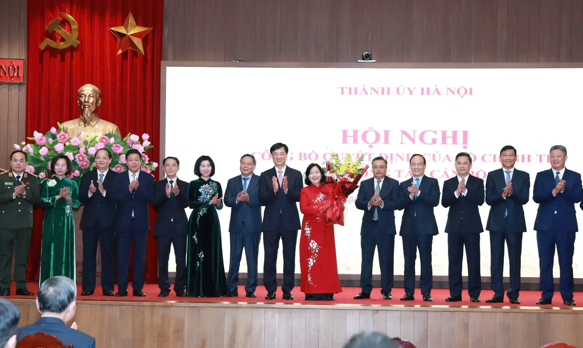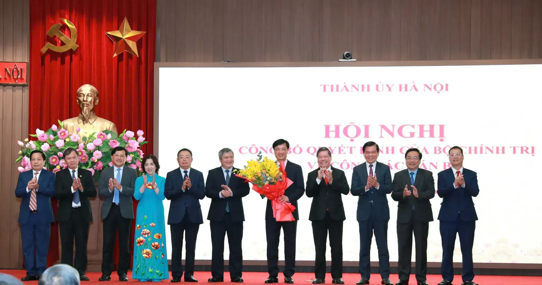 Các đồng chí trong Ban Thường vụ Thành ủy Hà Nội chúc mừng đồng chí Bùi Thị Minh Hoài
