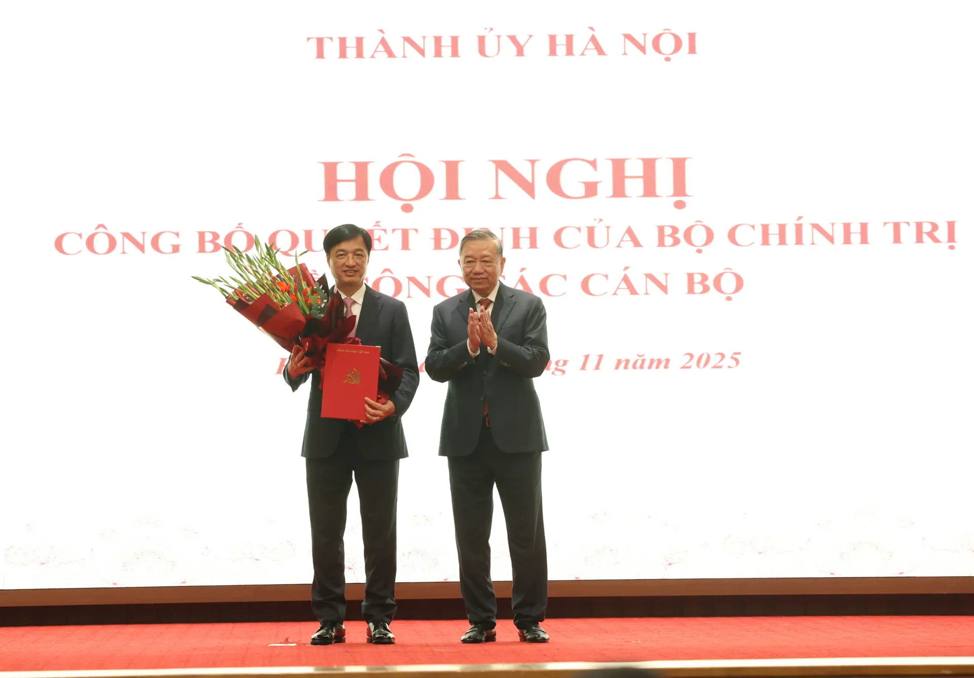 Tổng Bí thư Tô Lâm đã trao Quyết định của Bộ Chính trị điều động, phân công đồng chí Nguyễn Duy Ngọc giữ chức Bí thư Thành ủy Hà Nội khóa XVIII, nhiệm kỳ 2025-2030.