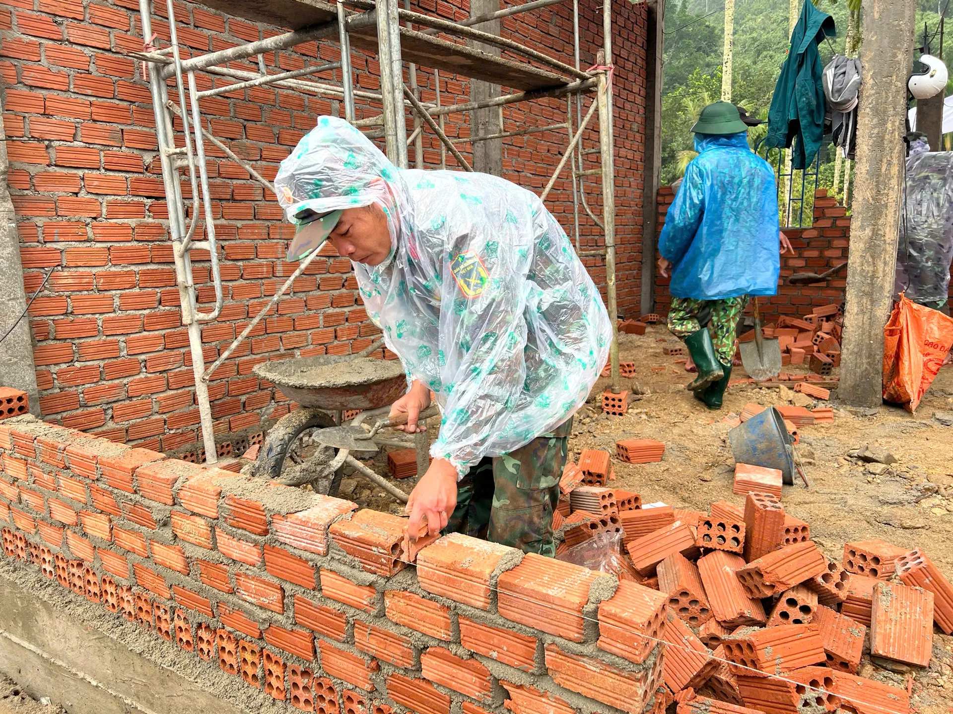 Sự có mặt của các chiến sĩ bộ đội đã mang theo không khí phấn khởi lan tỏa khắp bản làng. Những nhát cuốc đầu tiên, những mẻ bê tông đầu tiên được đổ xuống cũng là lúc niềm hy vọng về một cái Tết đủ đầy hơn bắt đầu nhen nhóm. Trên các công trường dựng nhà, hình ảnh người lính áo xanh lấm lem bùn đất, mồ hôi hòa cùng mưa rừng đã trở nên quen thuộc. Công việc kéo dài từ sáng sớm đến tối muộn, đúng tinh thần “hết việc chứ không hết giờ”.