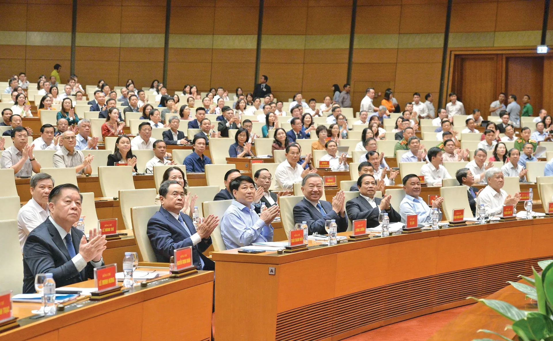 Quốc hội, Chính phủ, các bộ, ngành và địa phương đã chủ động, linh hoạt đổi mới phương thức hoạt động, sáng tạo trong triển khai thực hiện chức năng, nhiệm vụ, thích ứng với tình hình thực tiễn để hoàn thành khối lượng công việc lập pháp lớn, đồ sộ của nhiệm kỳ. Đáng chú ý, chỉ riêng trong năm 2025, Chính phủ đã trình Quốc hội thông qua Nghị quyết sửa đổi, bổ sung một số điều của Hiến pháp năm 2013; 99 luật, nghị quyết quy phạm pháp luật - một số lượng kỷ lục các dự án, dự thảo luật, nghị quyết; Chính phủ đã ban hành 377 nghị định, nghị quyết quy phạm pháp luật; các bộ, ngành đã soạn thảo, trình ban hành hoặc ban hành theo thẩm quyền 1.404 văn bản - nhiều nhất trong cả nhiệm kỳ; các địa phương đã ban hành 13.000 văn bản quy phạm pháp luật.