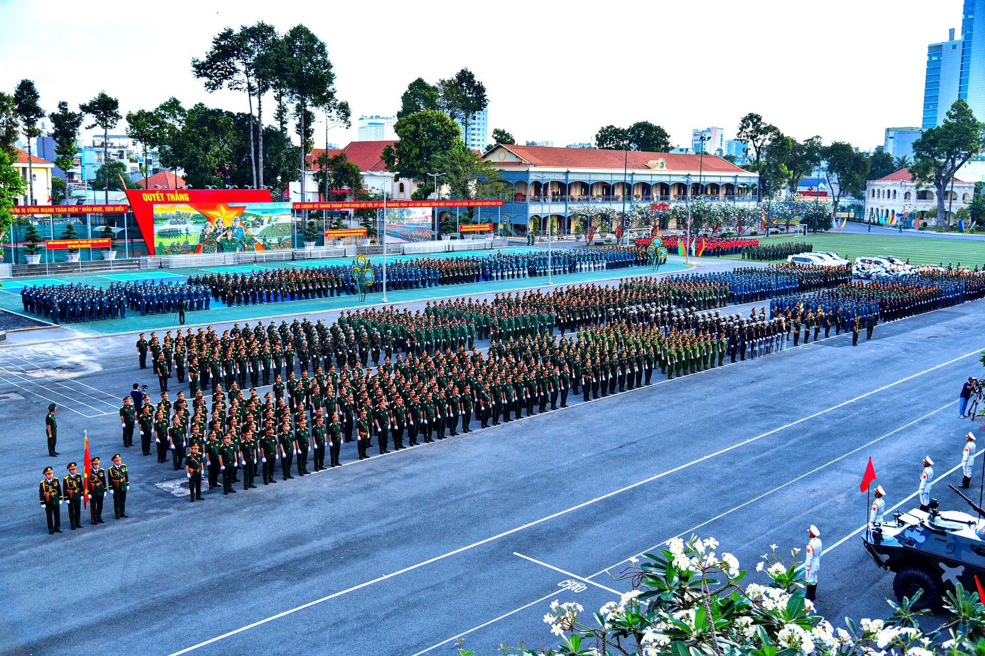 Thiếu tướng Vũ Văn Điền, Ủy viên Ban Thường vụ Thành ủy, Tư lệnh Bộ Tư lệnh TP Hồ Chí Minh chủ trì buổi tổng duyệt. Cùng dự còn có thủ trưởng các cơ quan, đơn vị và đại diện cán bộ, chiến sĩ tham gia lễ ra quân huấn luyện.