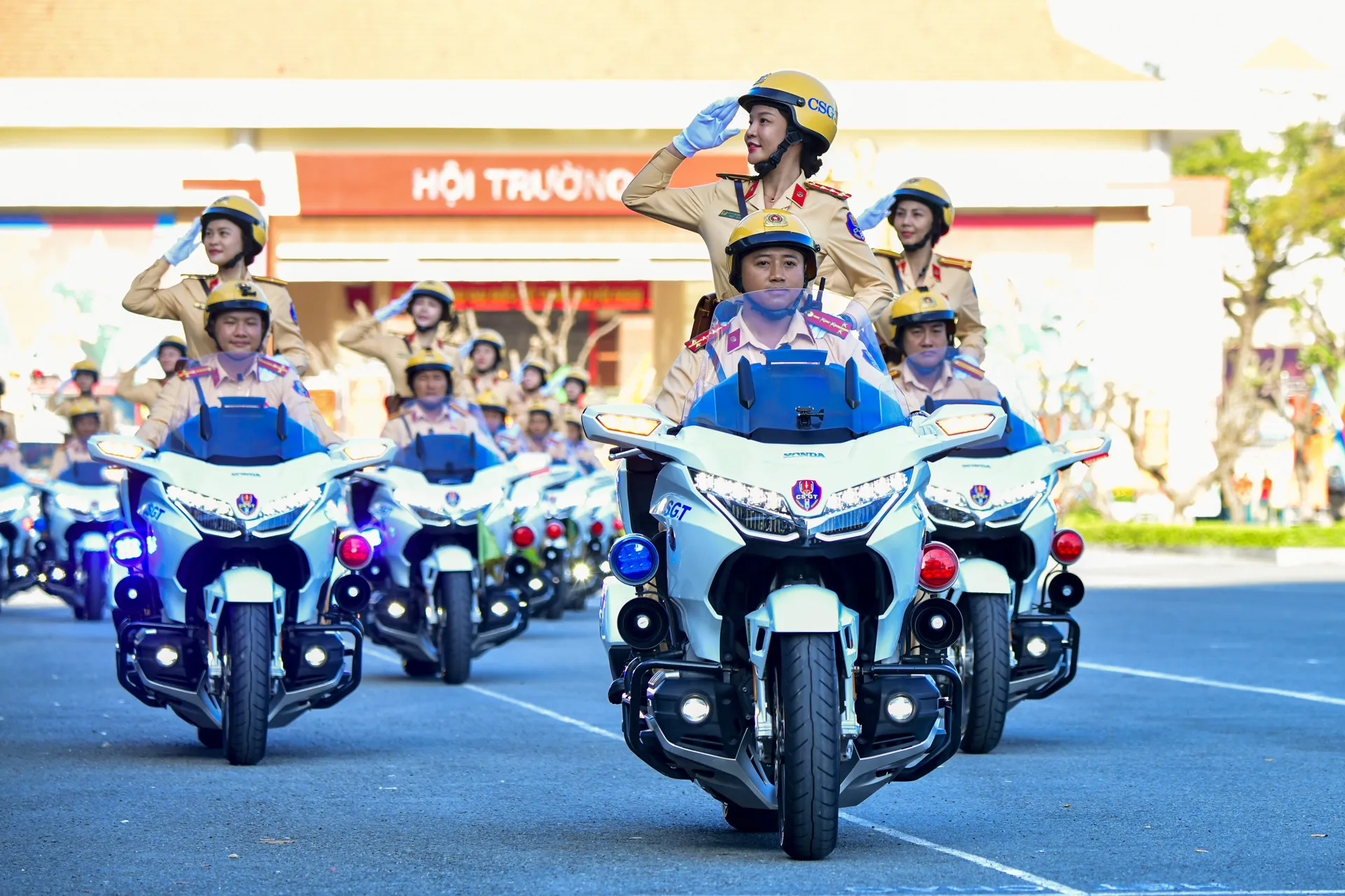 Đội mô tô đặc chủng của Tiểu đoàn Vệ binh - Kiểm soát quân sự Bộ Tư lệnh TP Hồ Chí Minh thể hiện sự uy nghiêm tại lễ tổng duyệt.
