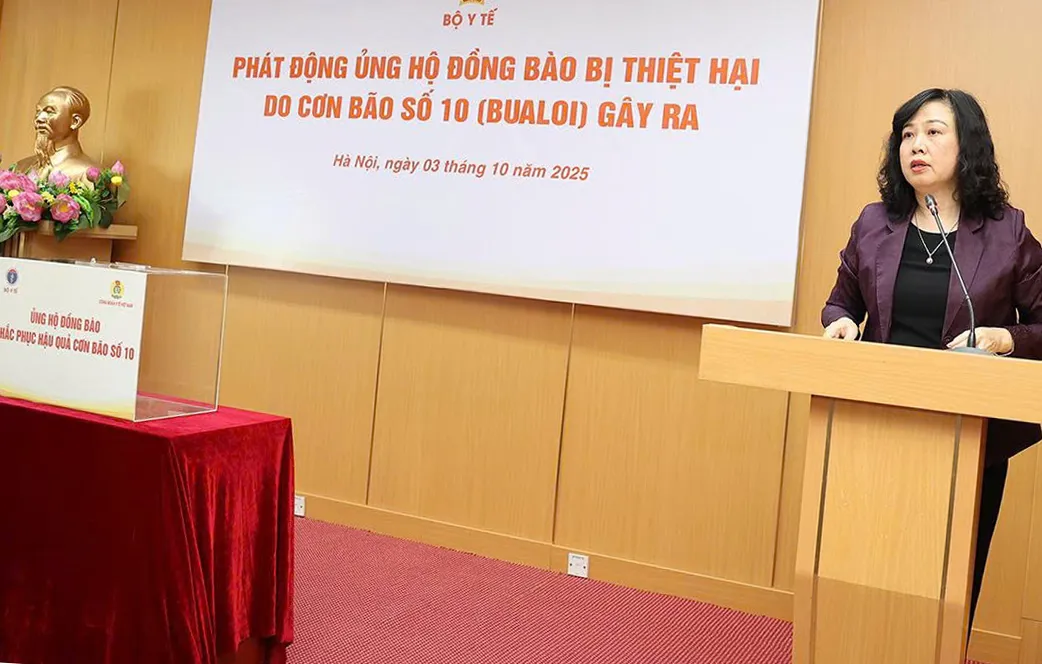 Kinhtedothi - Chiều 3/10, Bộ trưởng Bộ Y tế Đào Hồng Lan chủ trì lễ phát động quyên góp, ủng hộ đồng bào các tỉnh chịu thiệt hại do cơn bão số 10 nhằm hưởng ứng lời kêu gọi của Ủy ban T.Ư MTTQ. Đây không chỉ là hoạt động quyên góp, còn thể hiện tinh thần sẻ chia, trách nhiệm của đội ngũ cán bộ, công chức, viên chức, người lao động ngành y tế đối với đồng bào vùng lũ.