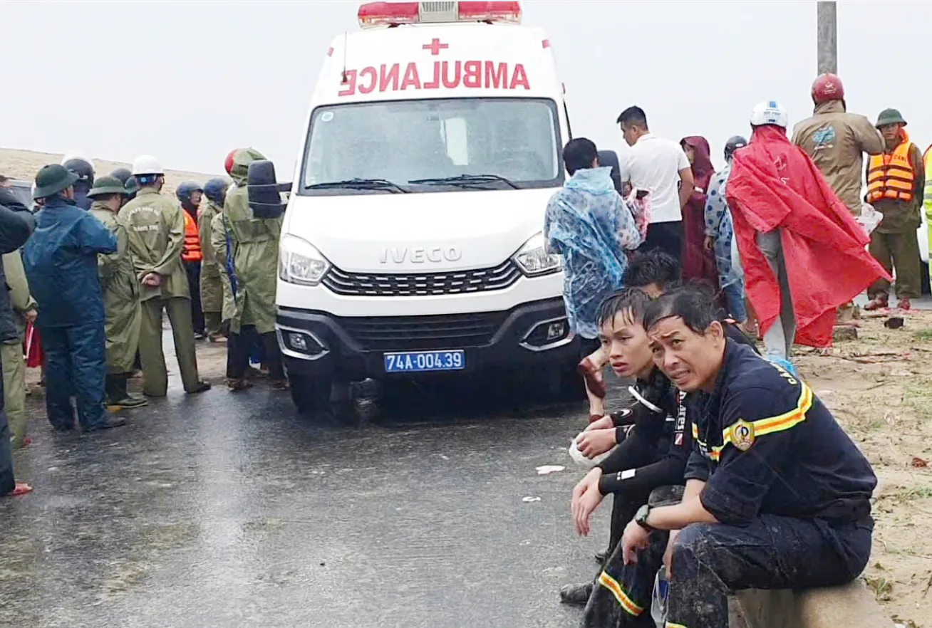 Ngành y tế và các lực lượng chức năng ở Quảng Trị kịp thời cấp cứu các thuyền viên vụ tàu cá gặp nạn do bị ảnh hưởng bão số 10.