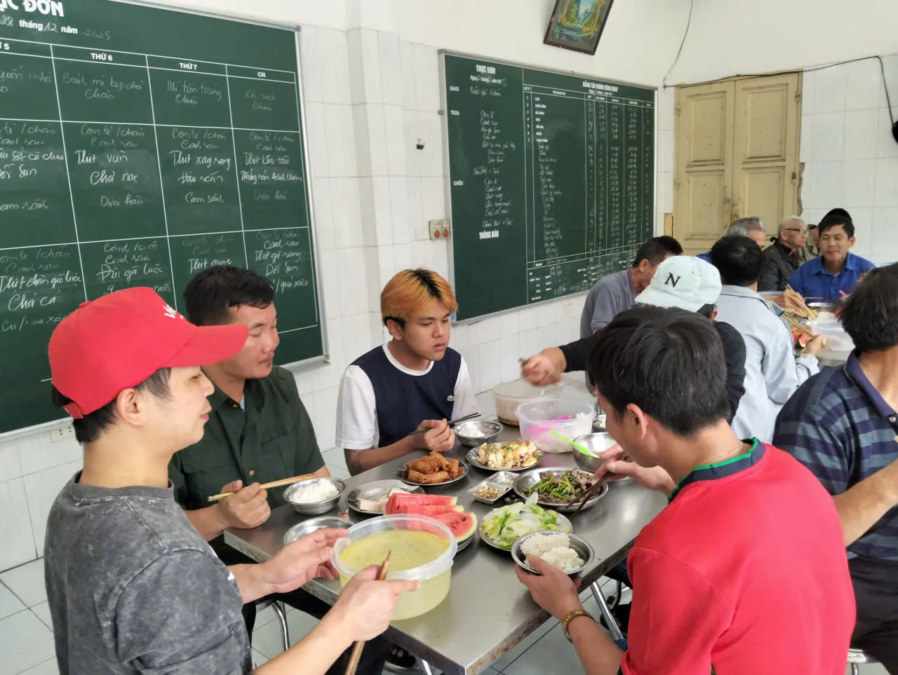 Bữa trưa của các đối tượng có nhiều món ăn tươi, hấp dẫn.