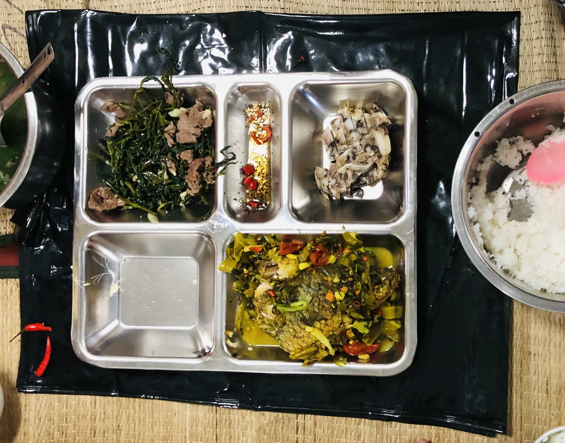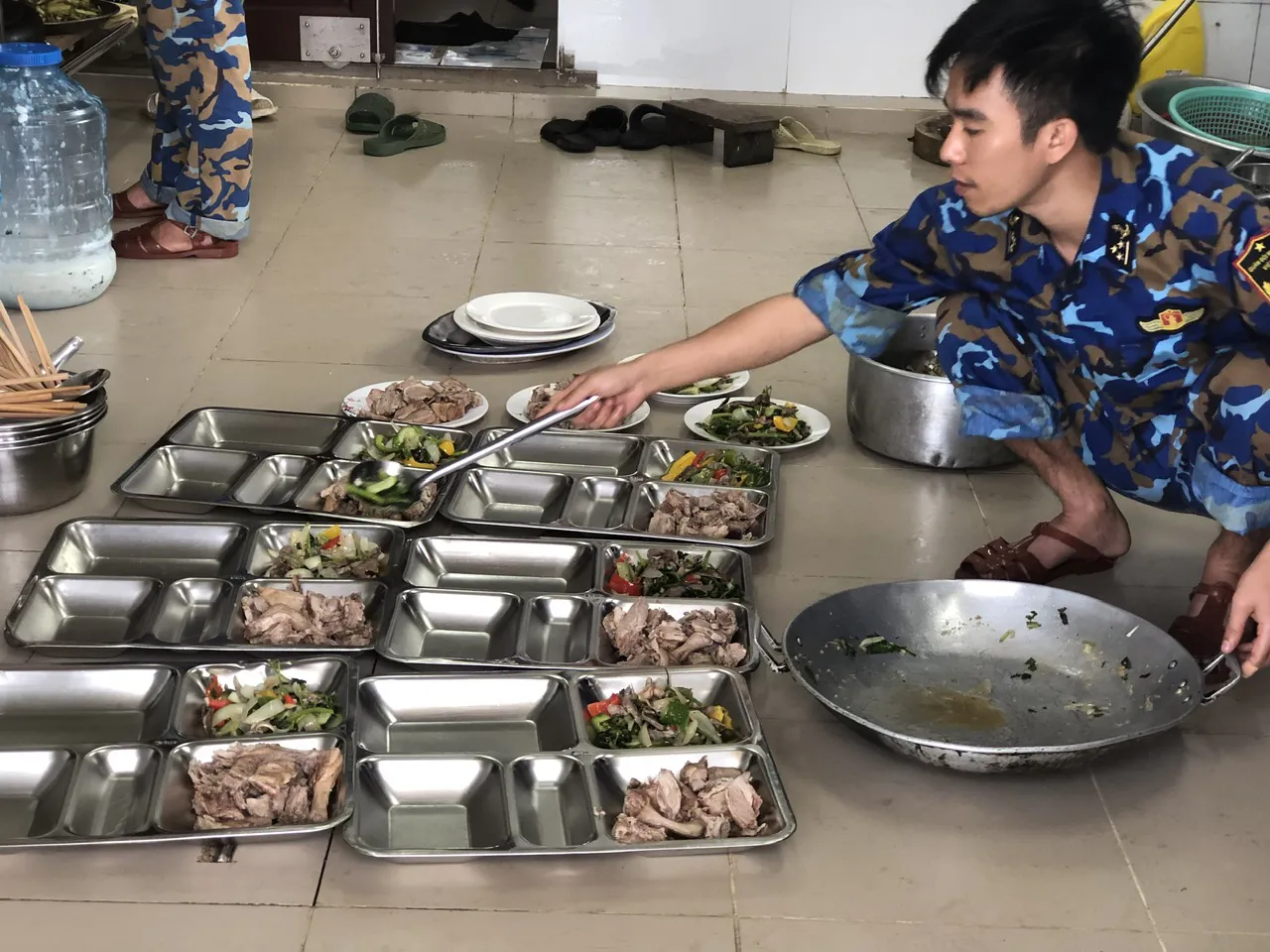 Mỗi mâm cơm trên tàu Trường Sa 01 gồm 6 người.