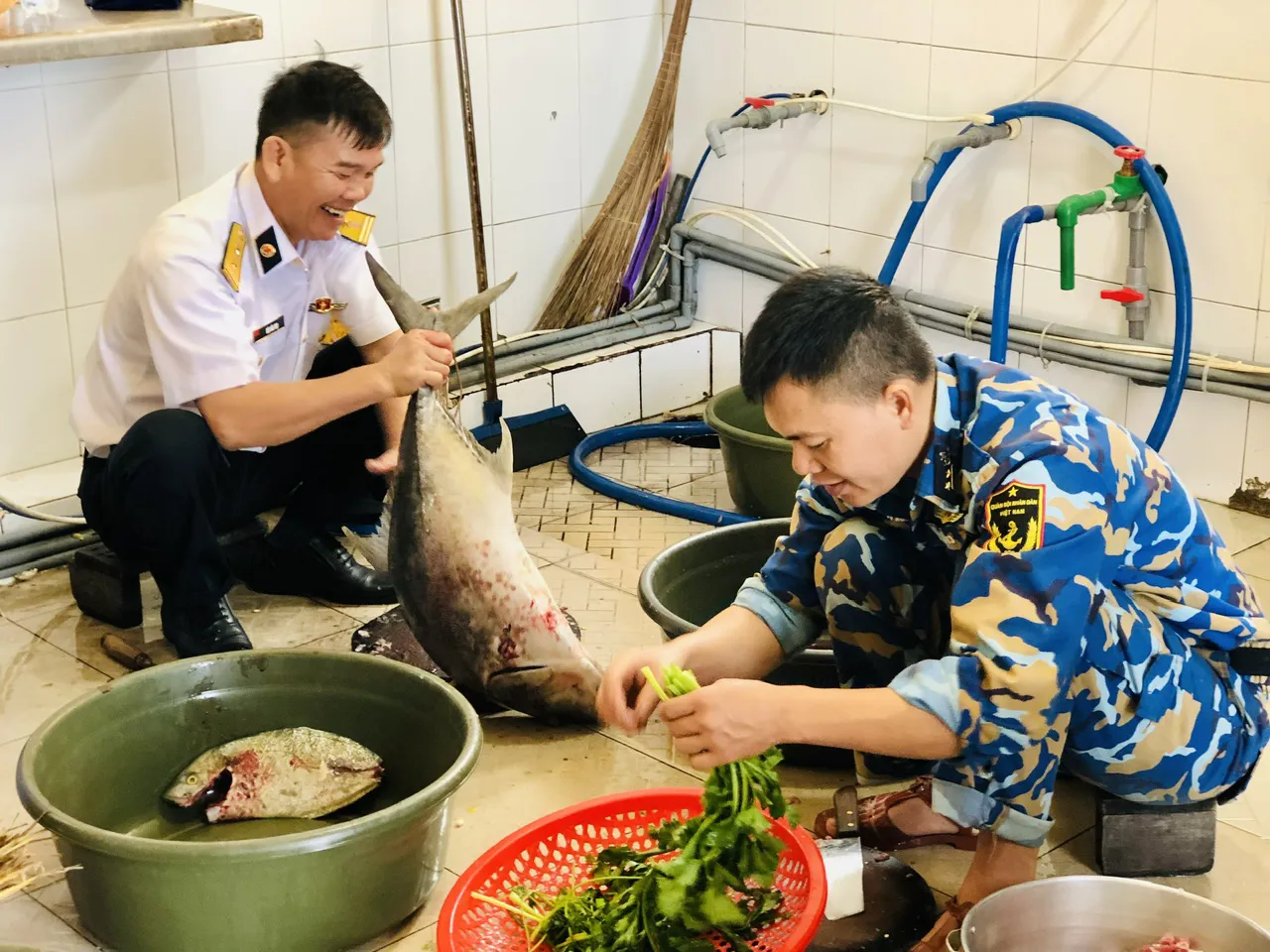 Thượng tá Quách Đình Hợi - Trưởng Ban Tuyên huấn Trung tâm nhiệt đới Việt – Nga (đại biểu đến từ Hà Nội) chia sẻ cảm nhận: “Các bữa ăn trên tàu Trường Sa 01 với thực đơn đa dạng, khiến chúng tôi cảm thấy bữa cơm ngon hơn trên đất liền, khẩu vị cũng rất hợp với mọi người; đặc biệt là sự phục vụ tận tình của bộ phận nhà bếp. Qua đây, tôi xin chân thành cảm ơn các cán bộ, chiến sĩ đã phục vụ tận tình cho đoàn công tác trong từng bữa ăn trên suốt hải trình thăm các Nhà giàn DK1 trên thêm lục địa phía Nam của Tổ quốc”.