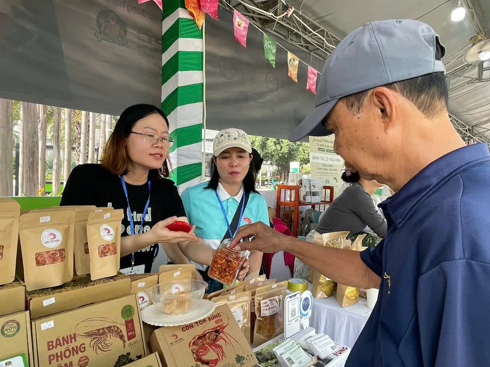 Đặc biệt, phiên chợ dành riêng một không gian cho “chương trình Khởi nghiệp xanh và phát triển xuất khẩu”. Tại đây, khách hàng có thể tìm thấy những sản phẩm sáng tạo từ tài nguyên bản địa như: trà sâm dây Ngọc Linh (Kon Tum), sản phẩm từ xơ mướp (Đồng Tháp), hay bánh tráng ăn vặt Vị Đơn Dương (Lâm Đồng). Những sản phẩm này không chỉ dừng lại ở thị trường nội địa mà còn mang tiềm năng xuất khẩu mạnh mẽ.