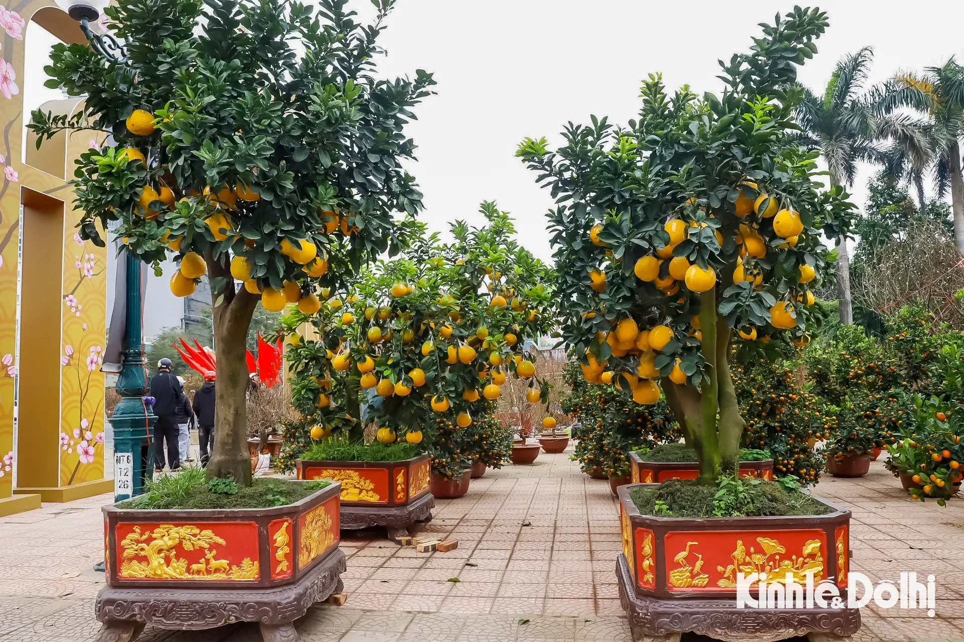 Nổi bật giữa các gian hàng là khu trưng bày của nhiều nhà vườn lớn với hàng chục gốc bưởi có tuổi đời hàng chục năm. Mỗi cây đều được tạo thế công phu, chăm sóc kỹ lưỡng để đảm bảo đủ hoa, nụ, lộc và quả cùng xuất hiện đúng thời điểm.