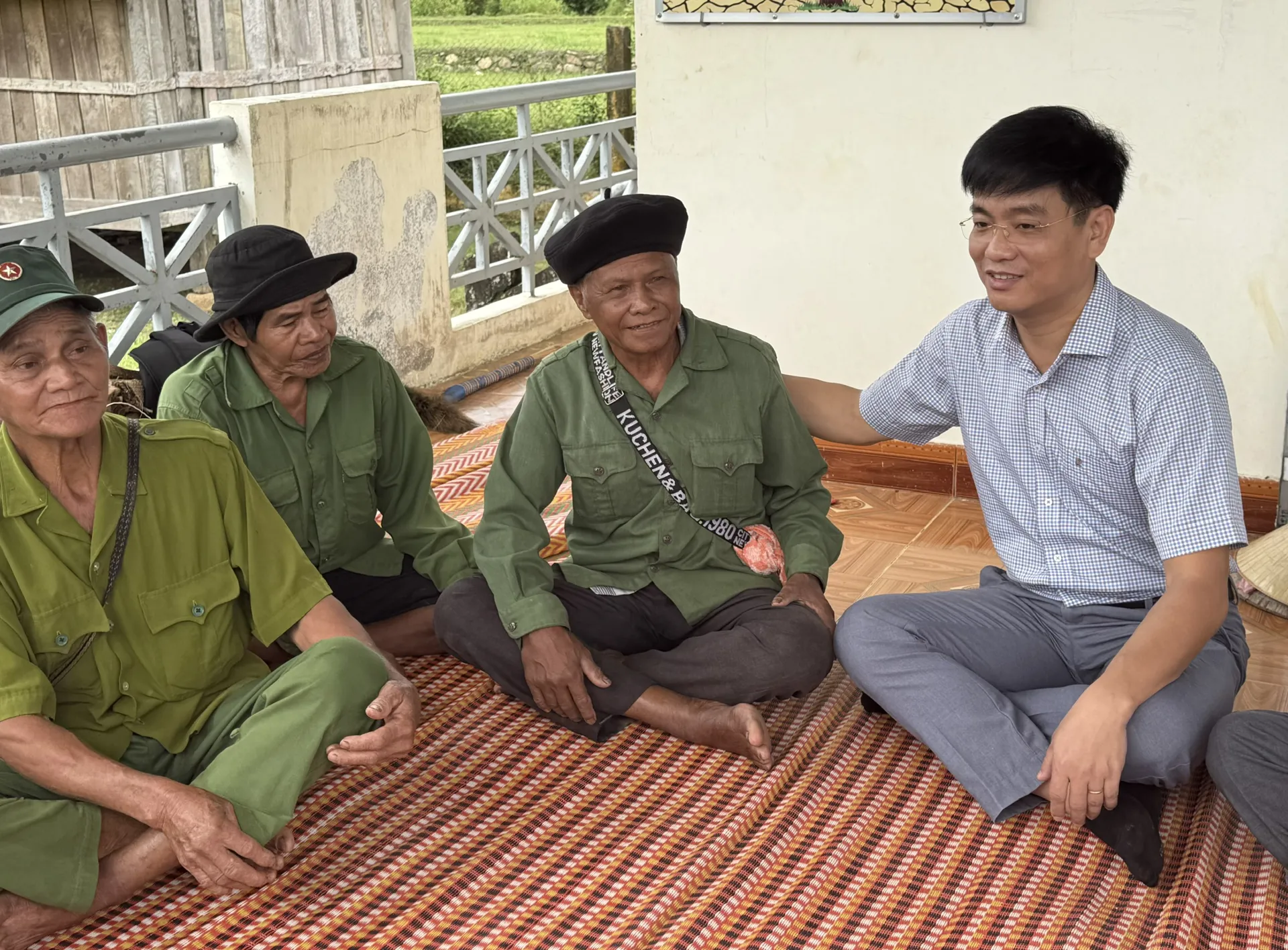 Phó Chủ tịch UBND tỉnh Quảng Ngãi Đỗ Tâm Hiển (bìa phải) gặp gỡ, động viên người dân thôn Ba Lang.