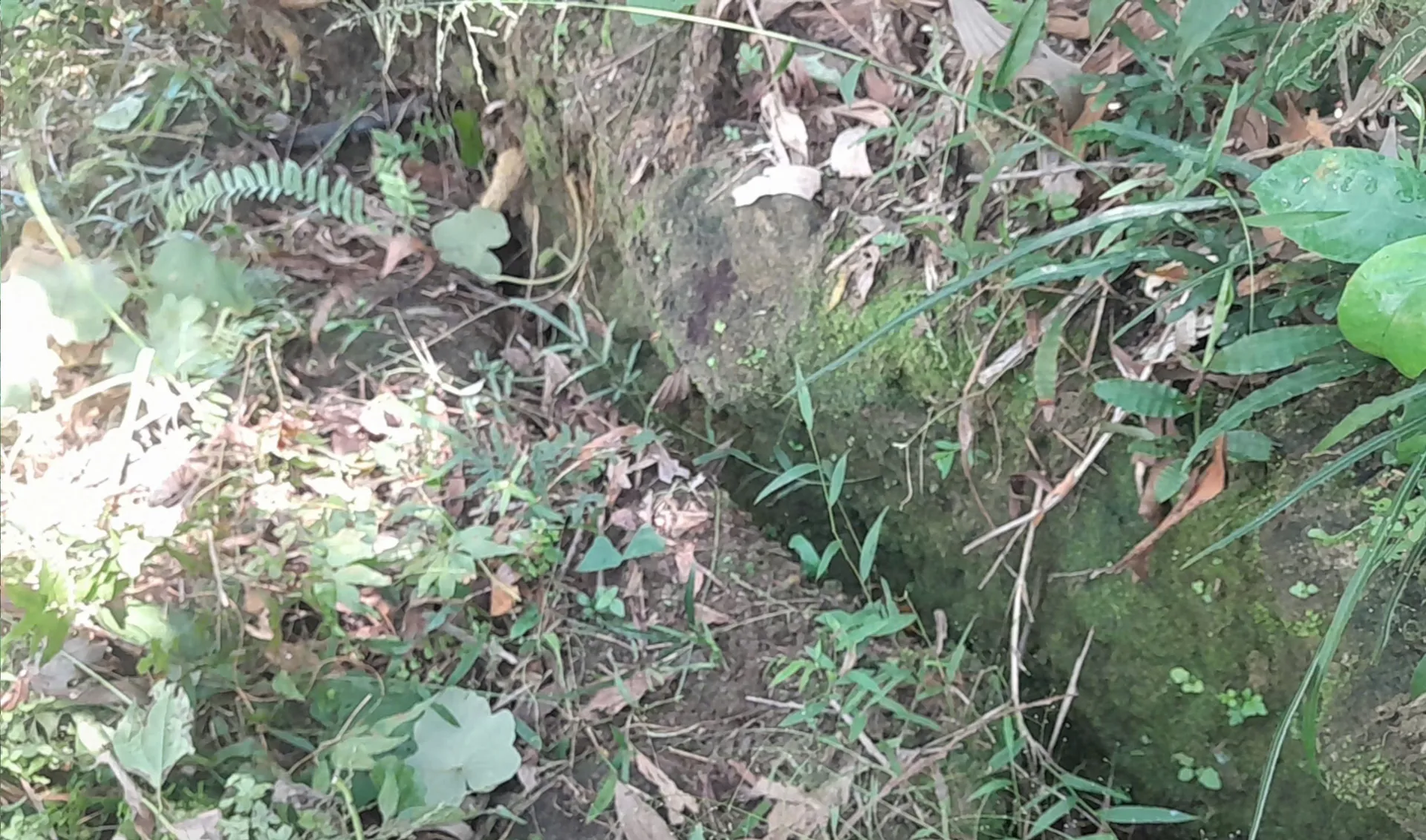 Theo người dân thôn Ba Lang, vết nứt trên núi xuất hiện cách đây 4 năm, được phát hiện khi bà con đi làm nương rẫy. Đây là vết nứt ngang sườn núi, nằm gần rẫy keo nhà anh Chương.