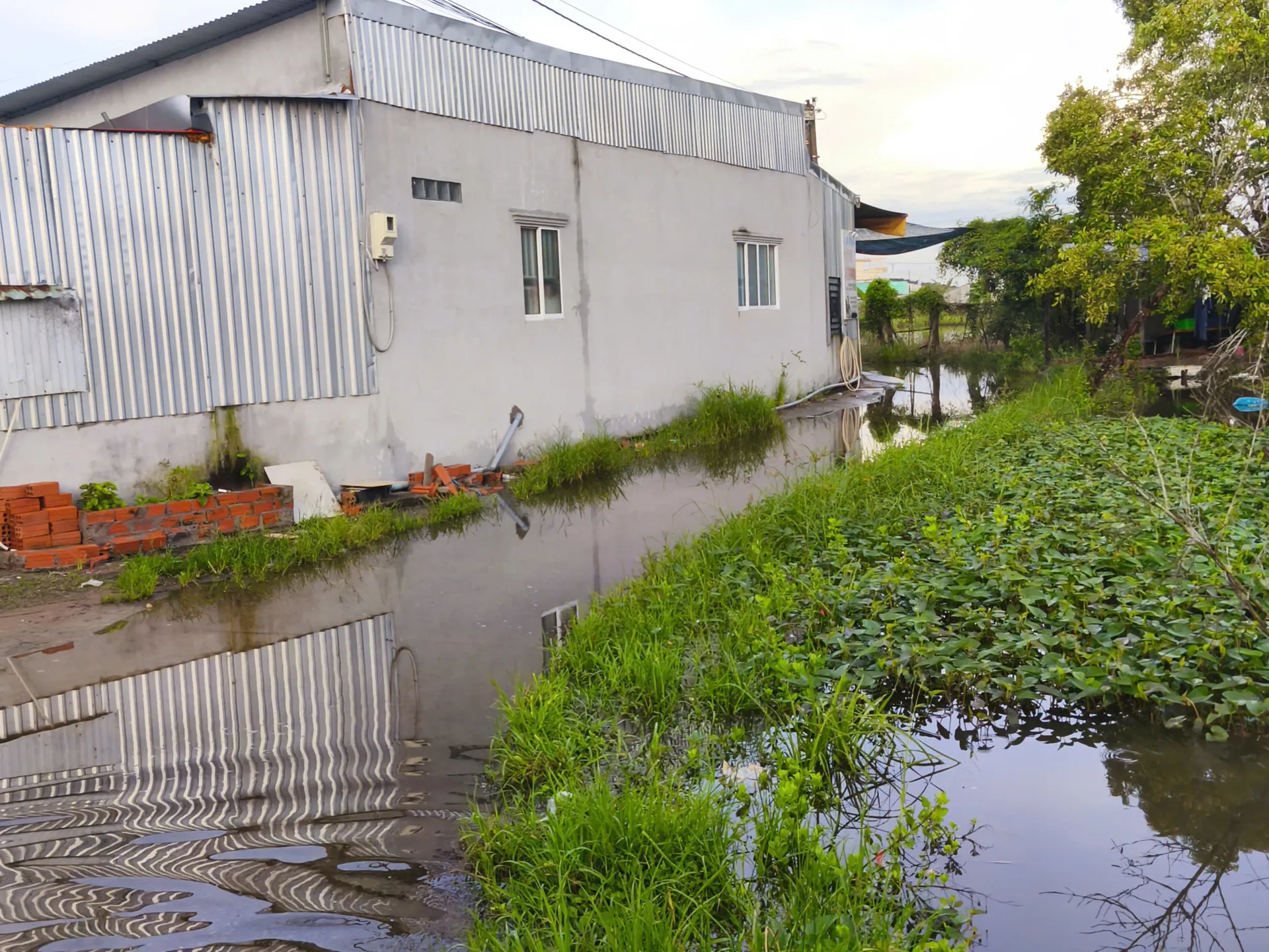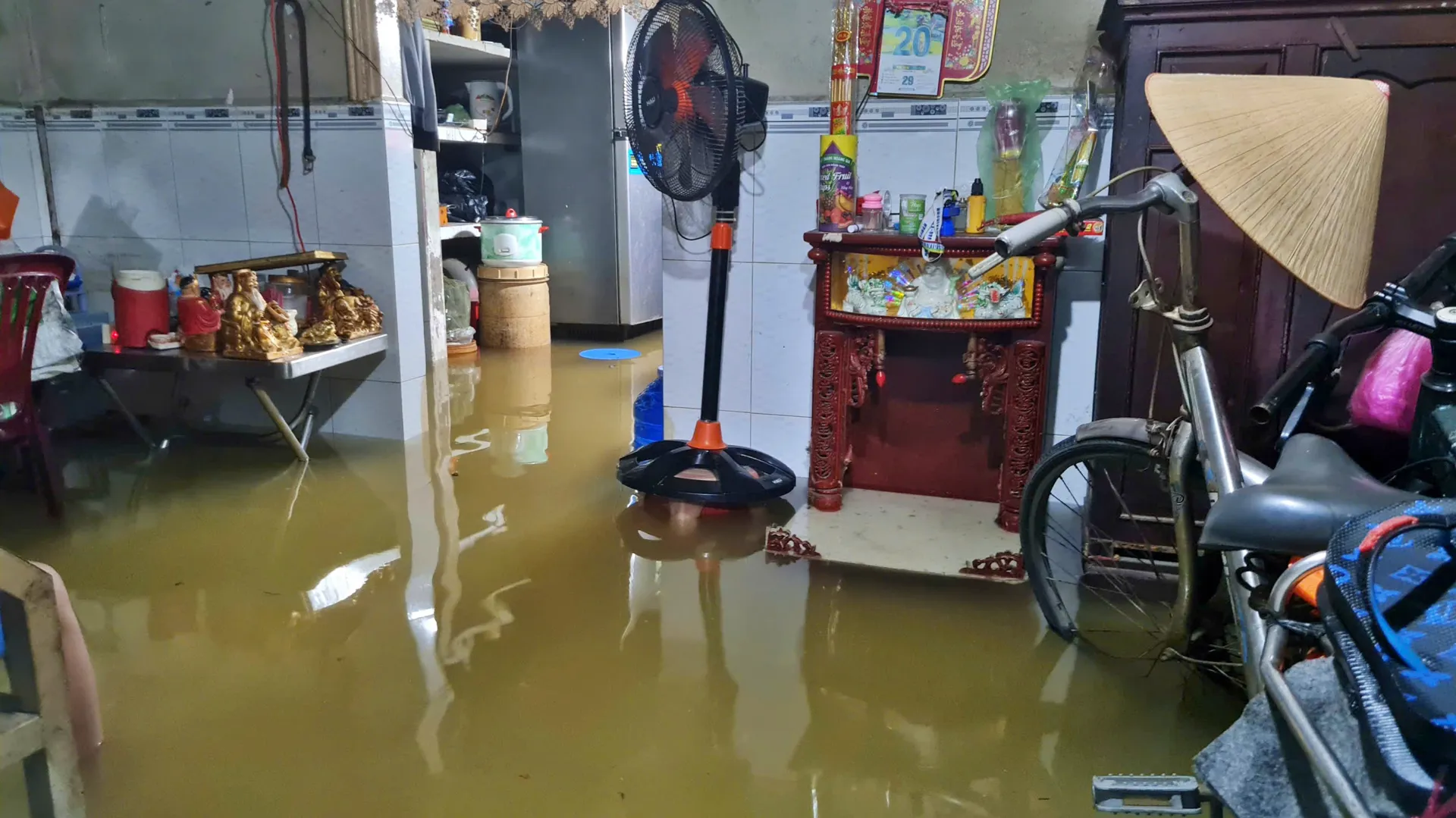 Nhà dân ở khóm 7 phường Bạc Liêu trong đợt triều cường ngày 26/10/2025 vừa qua. Ảnh Hoàng Nam