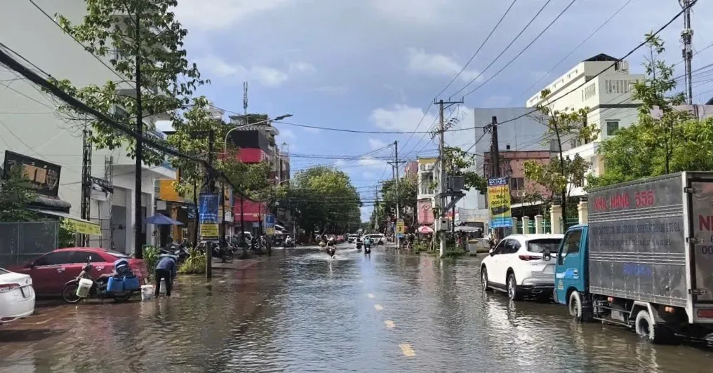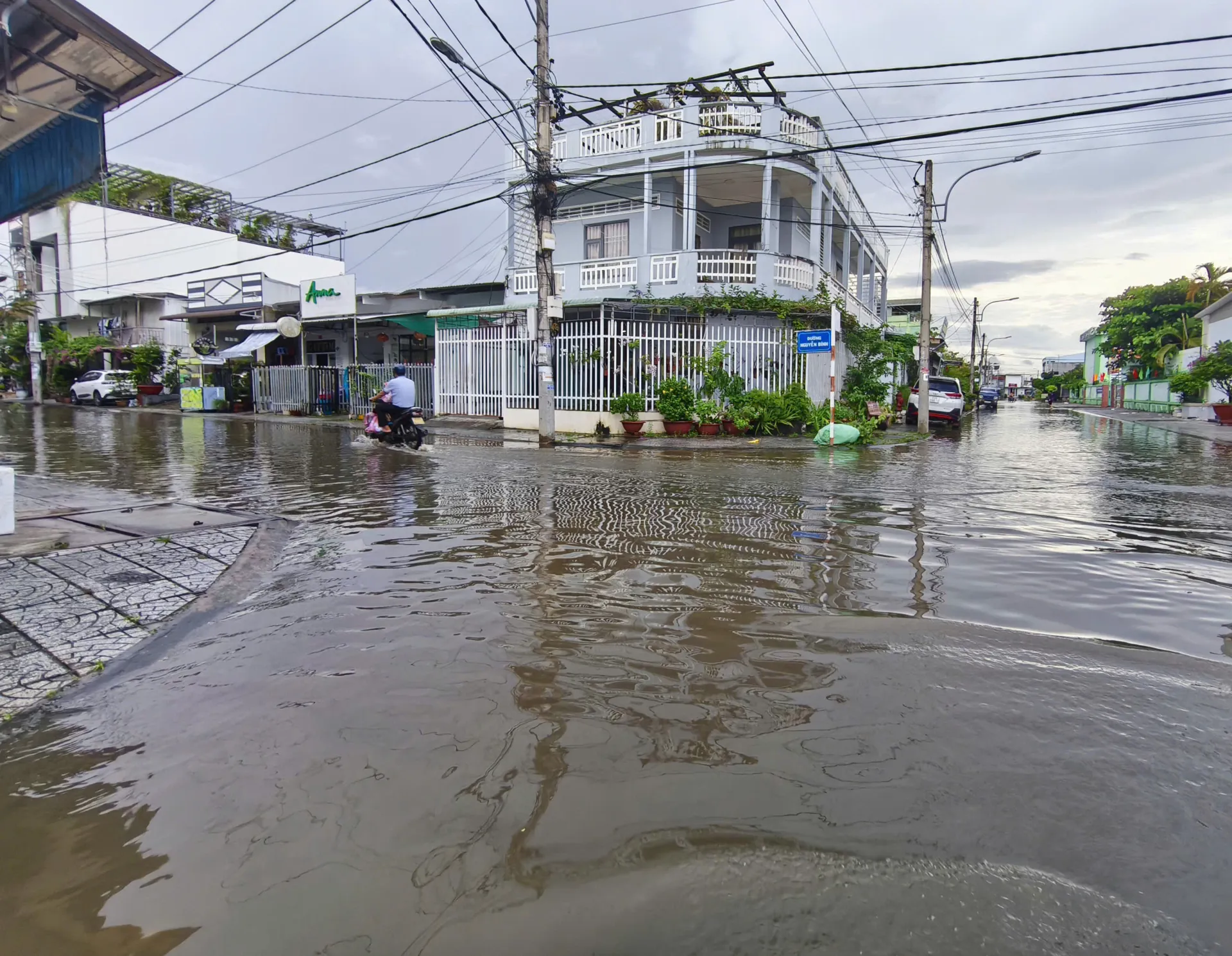 Đường Bùi Thị Trường ở trung tâm phường Tân Thành, tỉnh Cà Mau, nơi được xem là khó ngập nhưng vẫn úng ngập nhiều ngày trong đợt 26/10/2025. Ảnh Hoàng Nam