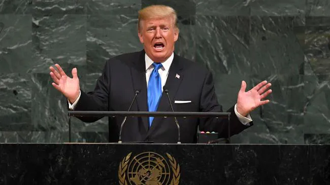 | Tổng thống Mỹ Donald Trump phát biểu tại Đại Hội đồng LHQ. |