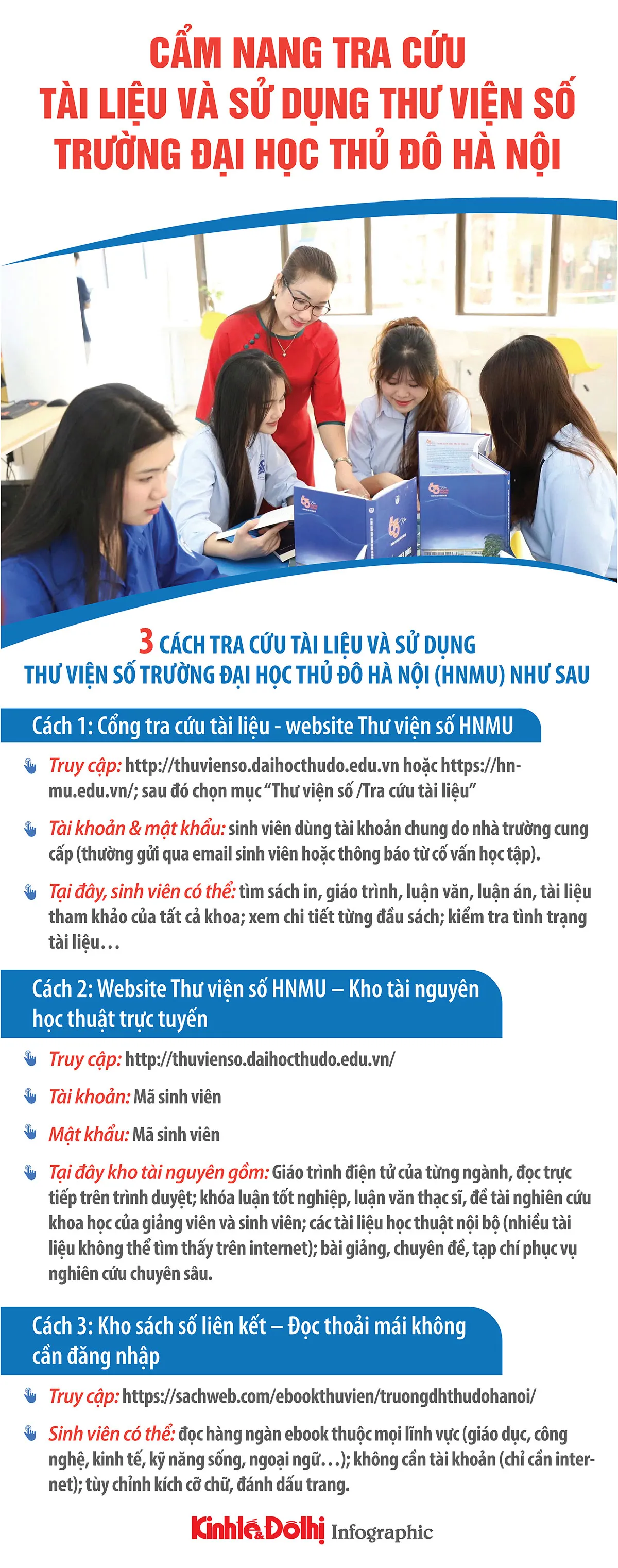 Kinhtedothi - Trong thời đại số, việc tìm kiếm tài liệu học tập online không chỉ tiện lợi mà còn giúp sinh viên học tập chủ động, hiệu quả. Với sinh viên Trường Đại học Thủ đô Hà Nội, việc biết, sử dụng và khai thác tài liệu thư viện số HNMU là yêu cầu quan trọng được đặt ra.
