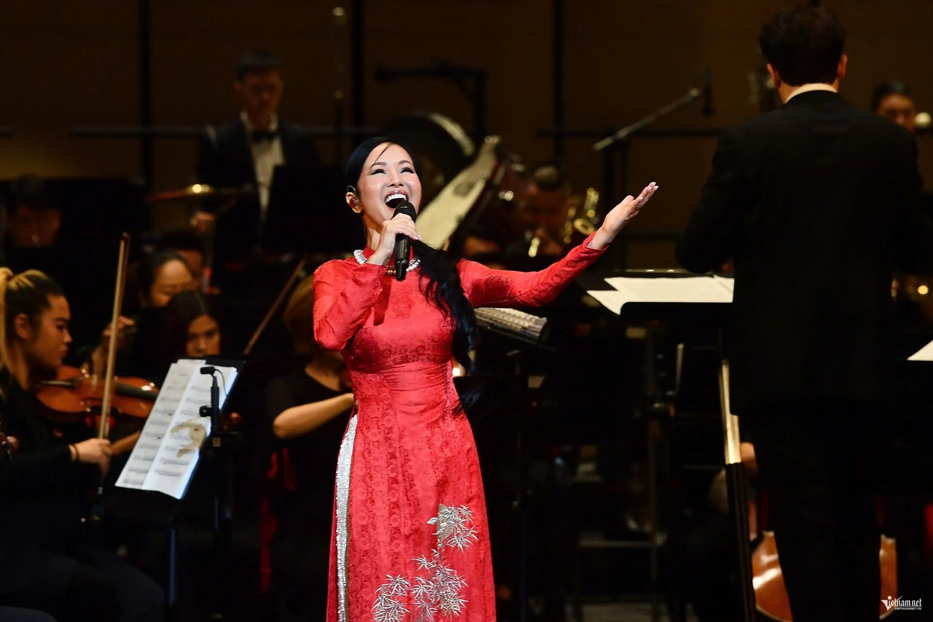 Sau nghi thức chào cờ với Quốc ca Việt Nam, Hòa nhạc quốc gia “Điều còn mãi” 2025 mở ra không gian nghệ thuật trữ tình, da diết với phần trình diễn đàn bầu tác phẩm Đất mẹ (nhạc sĩ Trần Mạnh Hùng) của Nghệ sĩ Ưu tú Lệ Giang.
