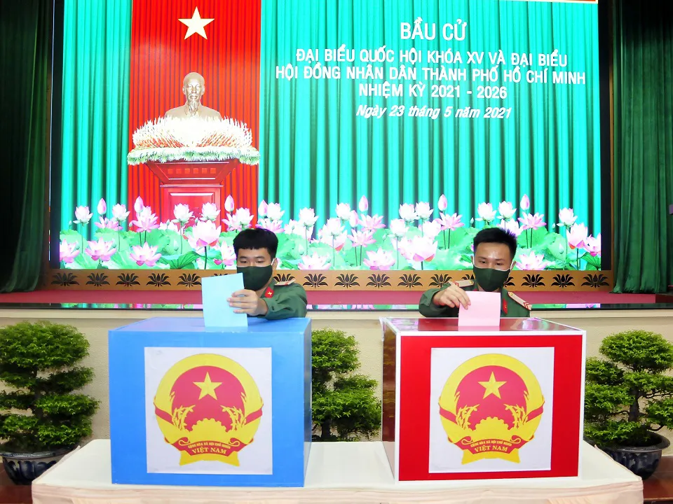 Sáng 23/5, cán bộ, chiến sĩ Bộ Tư lệnh TP Hồ Chí Minh đã tiến hành bầu cử tại khu vực bỏ phiếu số 72, tại hội trường Bộ Tư lệnh TP.