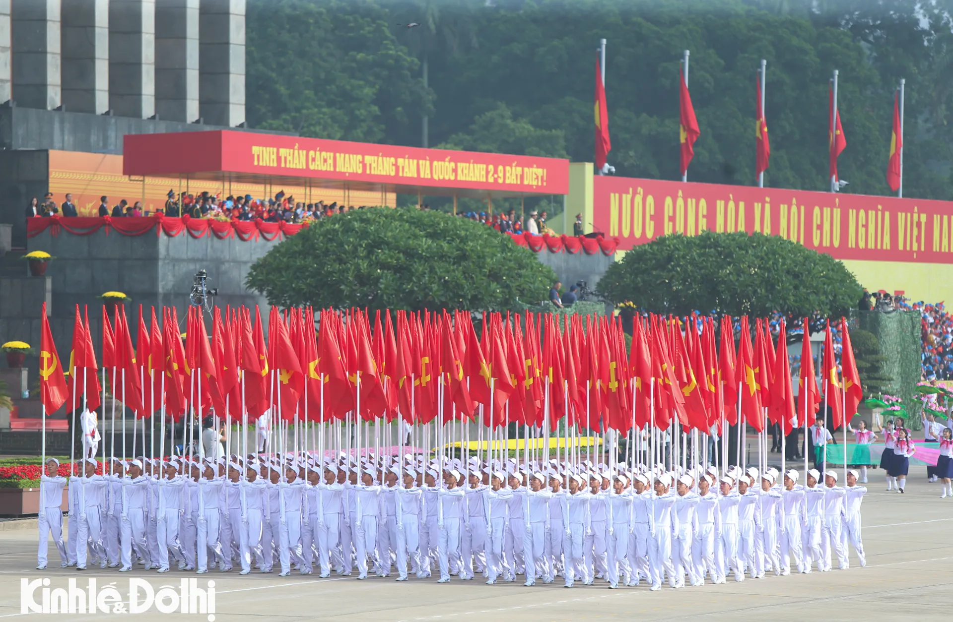 Kinhtedothi - Sáng 2/9, tại Quảng trường Ba Đình lịch sử - nơi 80 năm trước Chủ tịch Hồ Chí Minh đọc bản Tuyên ngôn Độc lập, khai sinh ra nước Việt Nam dân chủ cộng hòa (nay là nước Cộng hòa Xã hội Chủ nghĩa Việt Nam), Ban Chấp hành Trung ương Đảng - Quốc hội - Chủ tịch nước - Chính phủ nước Cộng hòa xã hội chủ nghĩa Việt Nam; Ủy ban MTTQ Việt Nam và TP Hà Nội tổ chức trọng thể Lễ kỷ niệm, diễu binh, diễu hành 80 năm Cách mạng tháng Tám thành công (19/8/1945 -19/8/2025) và Quốc khánh nước Cộng hòa xã hội chủ nghĩa Việt Nam (2/9/1945 -2/9/2025).