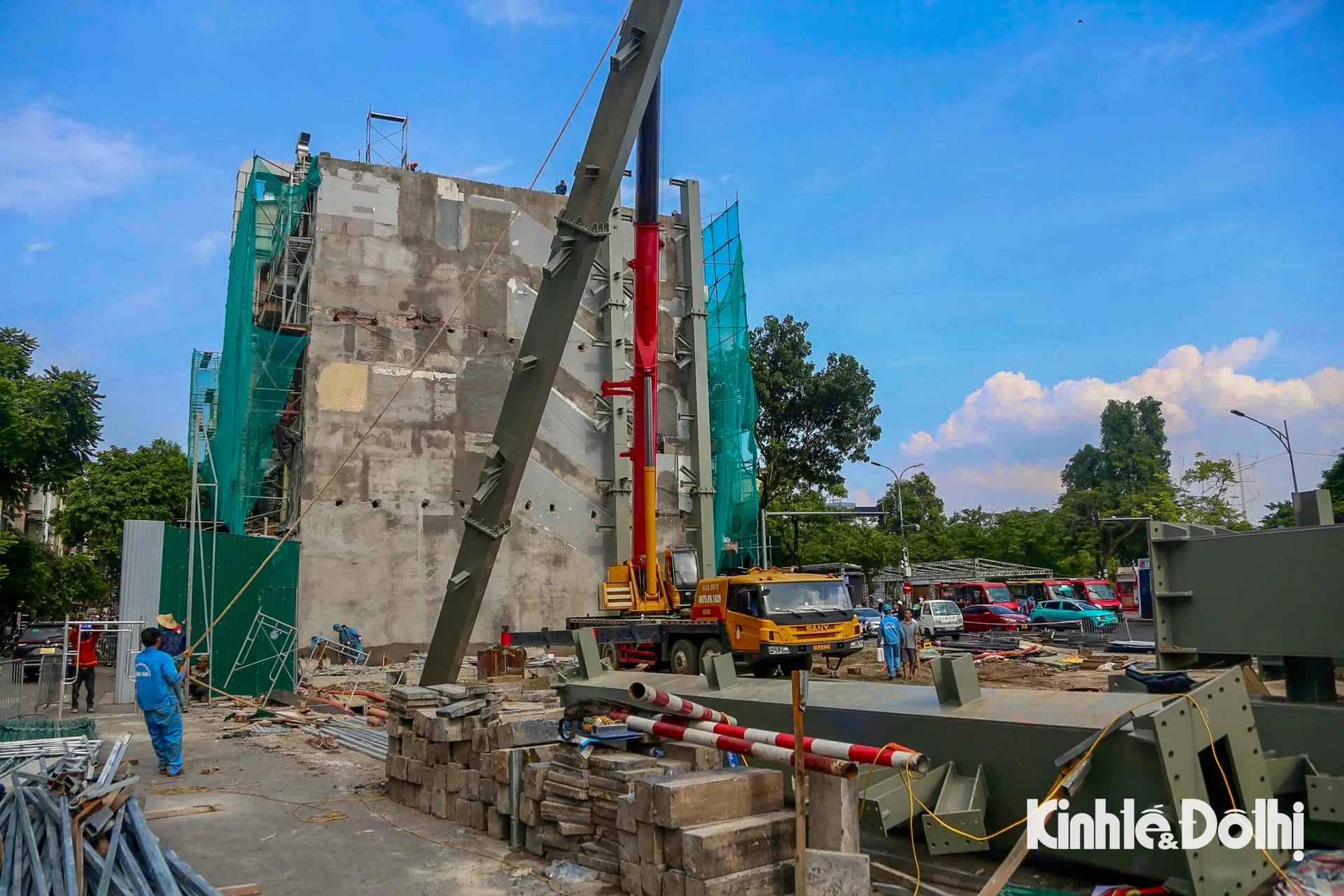 Kinhtedothi - Sau gần 1 tháng thi công, phần lớn tòa nhà “Hàm Cá Mập” (số 1–3–5 Đinh Tiên Hoàng) đã bị phá dỡ. Hiện tại, các công nhân đang tất bật xử lý những hạng mục cuối cùng.