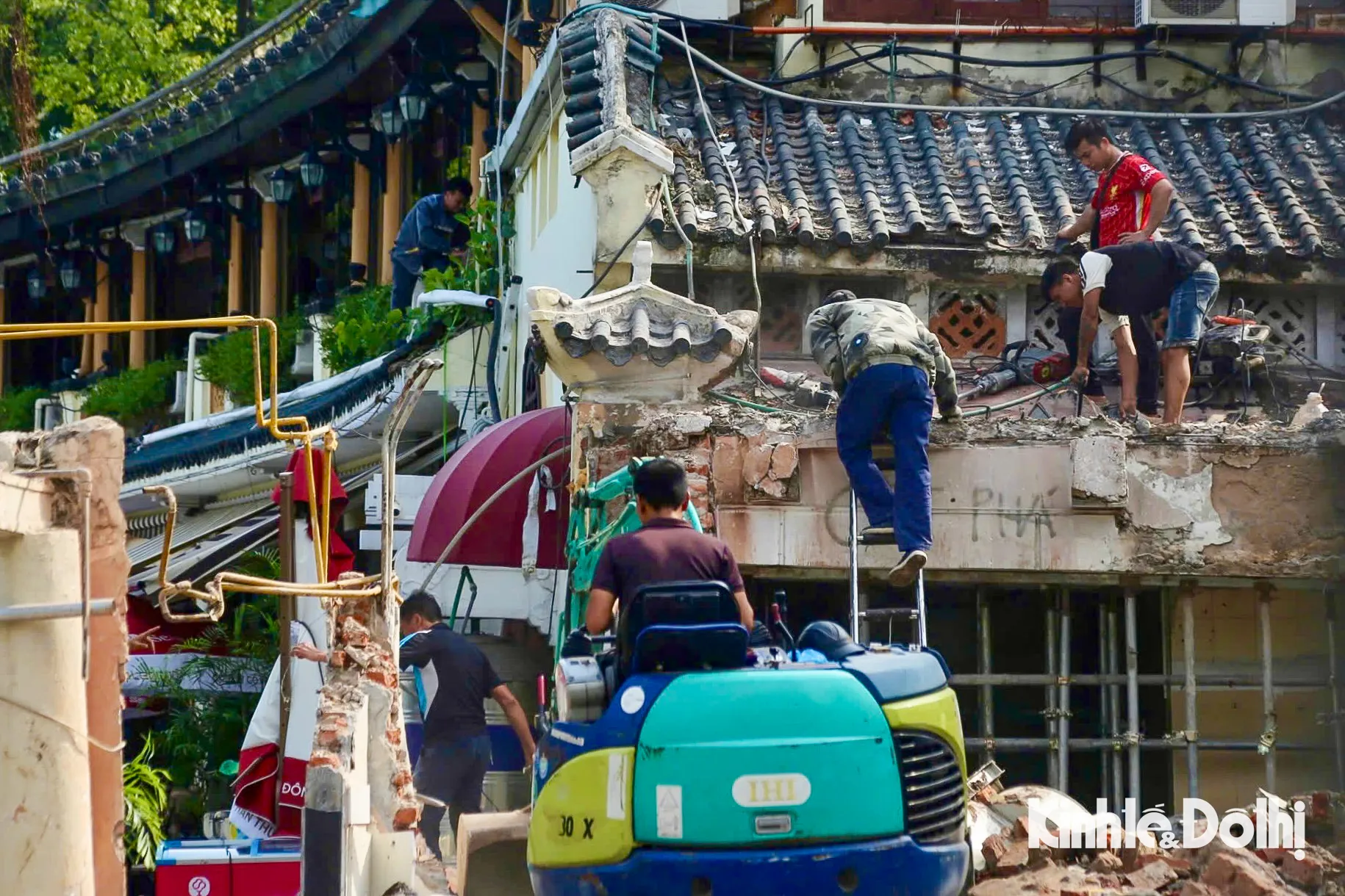 Cận cảnh phá dỡ một phần nhà hàng Thủy Tạ bên hồ Hoàn Kiếm