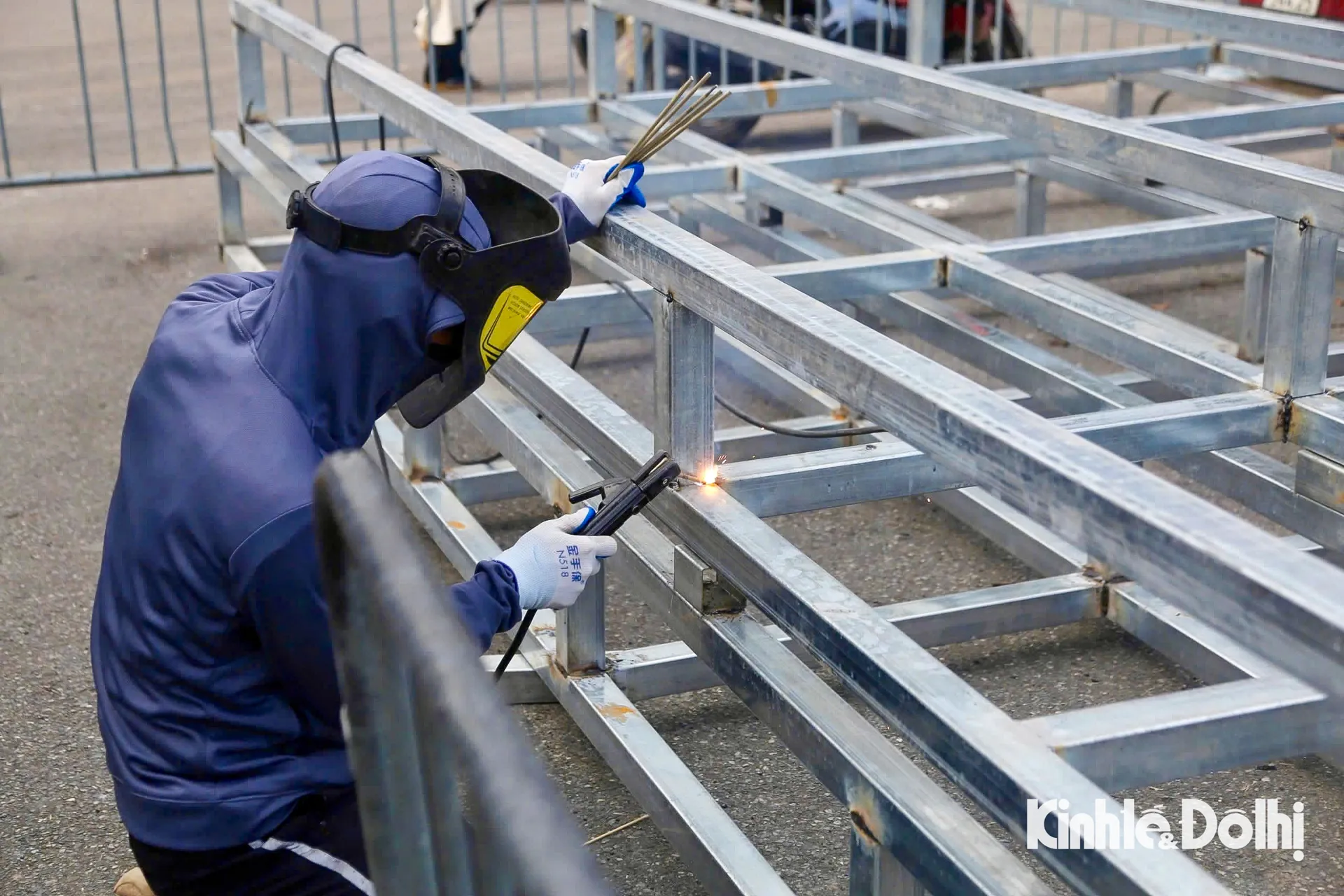 Các công nhân đang gấp rút hoàn thành công việc đúng tiến độ.