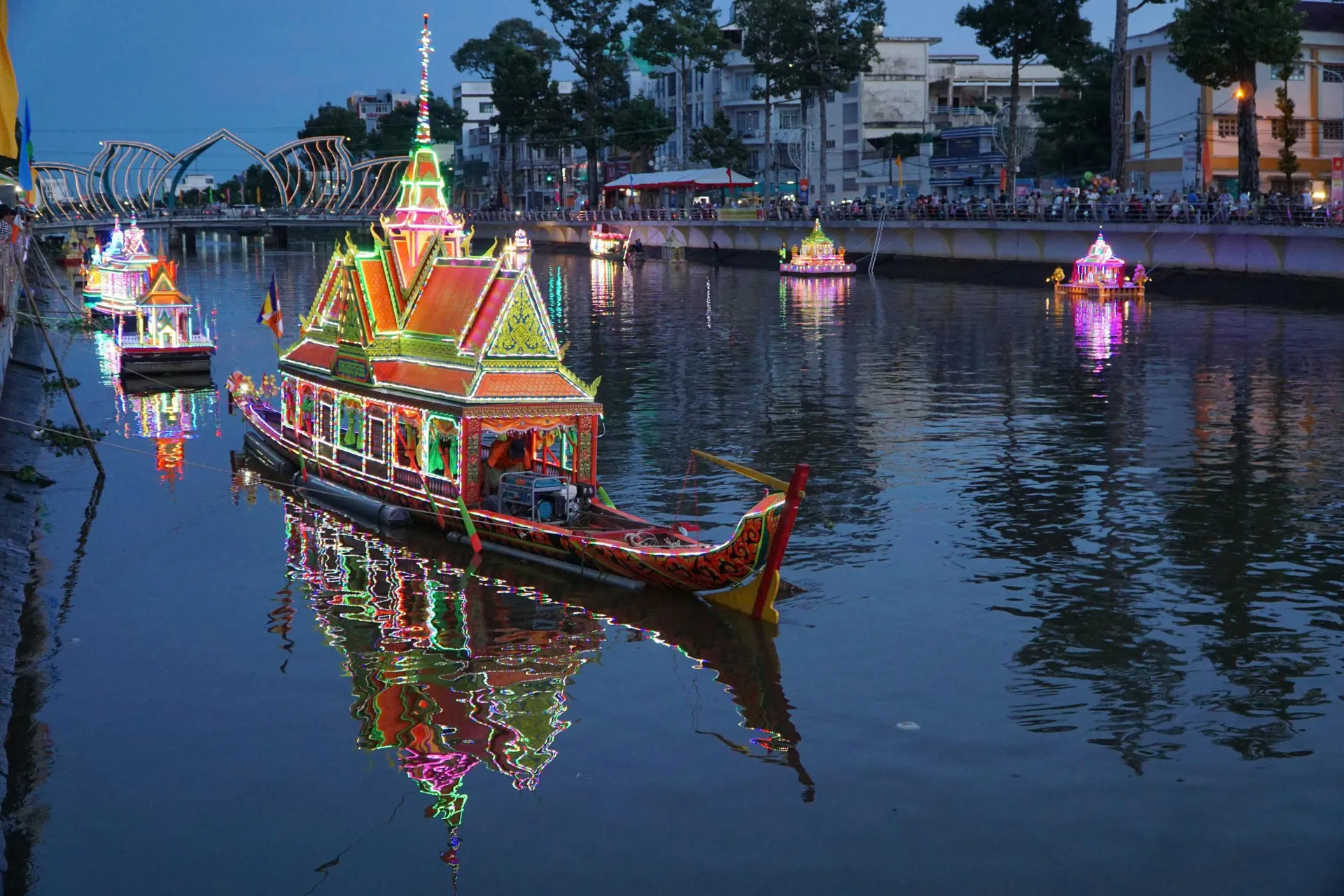 Tối cùng ngày, trong khuôn khổ lễ hội cũng diễn ra lễ khai mạc trình diễn thả đèn nước (Lôiprotip) và ghe Cà Hâu trên sông Maspéro, phường Sóc Trăng, TP Cần Thơ.