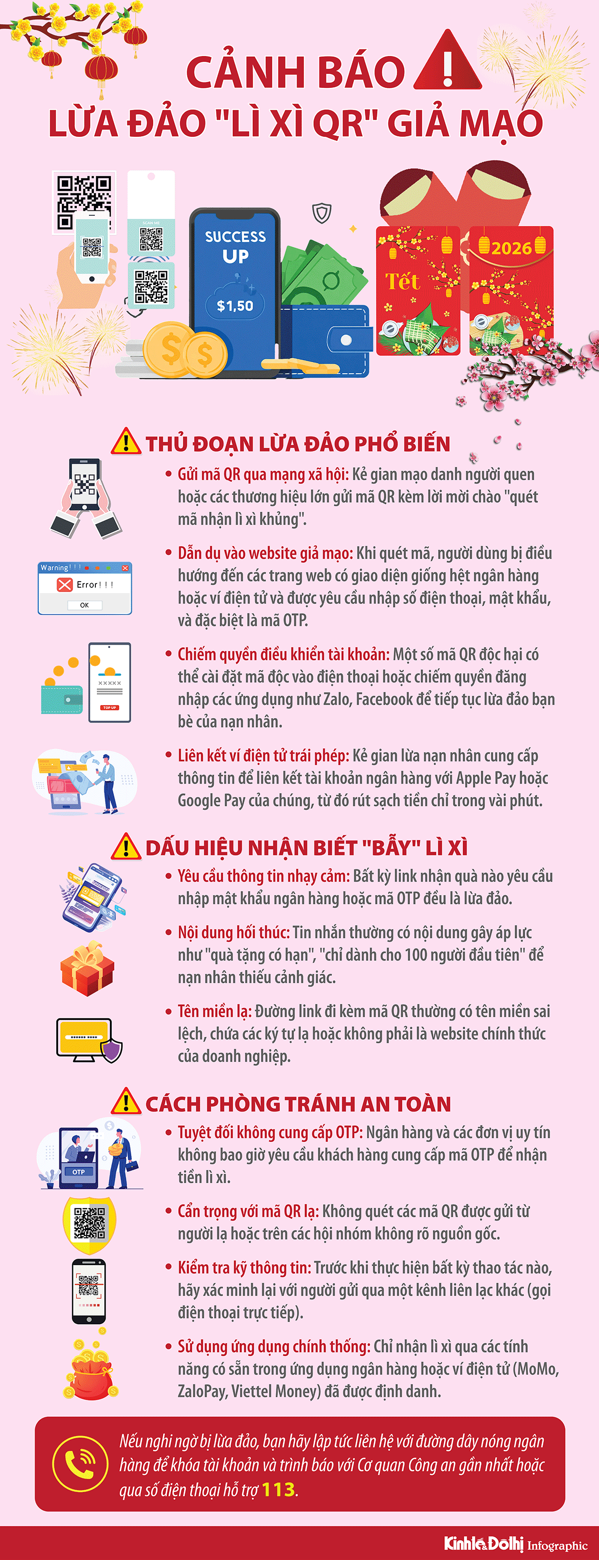Kinhtedothi - Dịp Tết Nguyên đán 2026, các cơ quan chức năng và ngân hàng liên tục đưa ra cảnh báo về chiêu trò lừa đảo "lì xì QR" giả mạo nhằm chiếm đoạt tài sản. Kẻ gian lợi dụng tâm lý hào hứng nhận lộc đầu năm để dẫn dụ nạn nhân vào các "bẫy" công nghệ tinh vi.