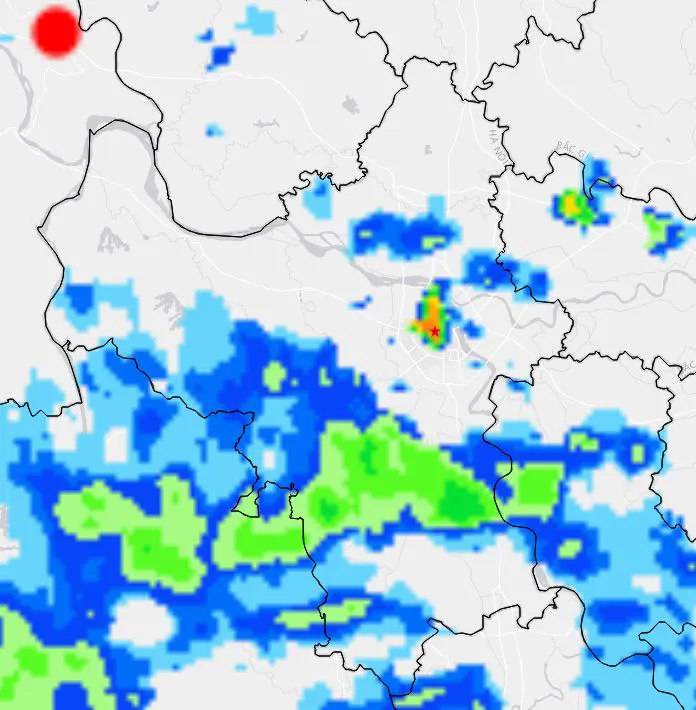 Qua theo dõi trên ảnh vệ tinh và ảnh ra đa thời tiết cho thấy vùng mây đối lưu đang hình thành trên khu vực Tây Hồ, Ba Đình, Đống Đa, Hà Đông. Các ổ mây tiếp tục phát triển và dịch chuyển chậm về phía Tây Nam.
