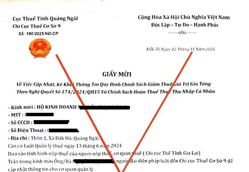 Những ngày gần đây, nhiều hộ kinh doanh trên địa bàn tỉnh Quảng Ngãi phản ánh liên tục nhận được giấy mời bằng văn bản, có đóng dấu đỏ, yêu cầu làm việc liên quan đến chính sách giảm thuế giá trị gia tăng và hoàn thuế thu nhập cá nhân.