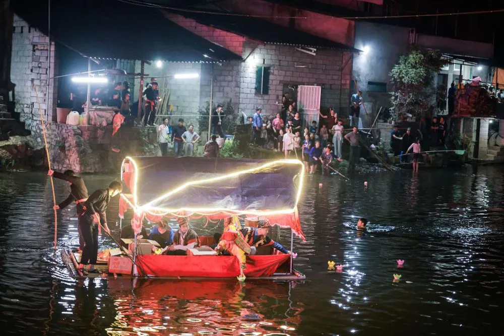 Nghi lễ thả đèn hoa đăng trong Lễ hội Miếu Long Vương, xã Đoài Dương. Ảnh: Lam Giang