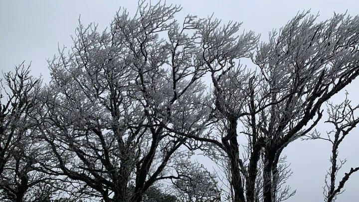 Băng giá xuất hiện trên đỉnh Phia Oắc, Cao Bằng sáng 6/1. (Ảnh: Kim Phương)