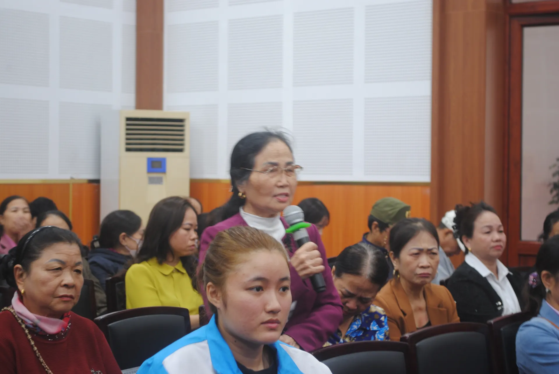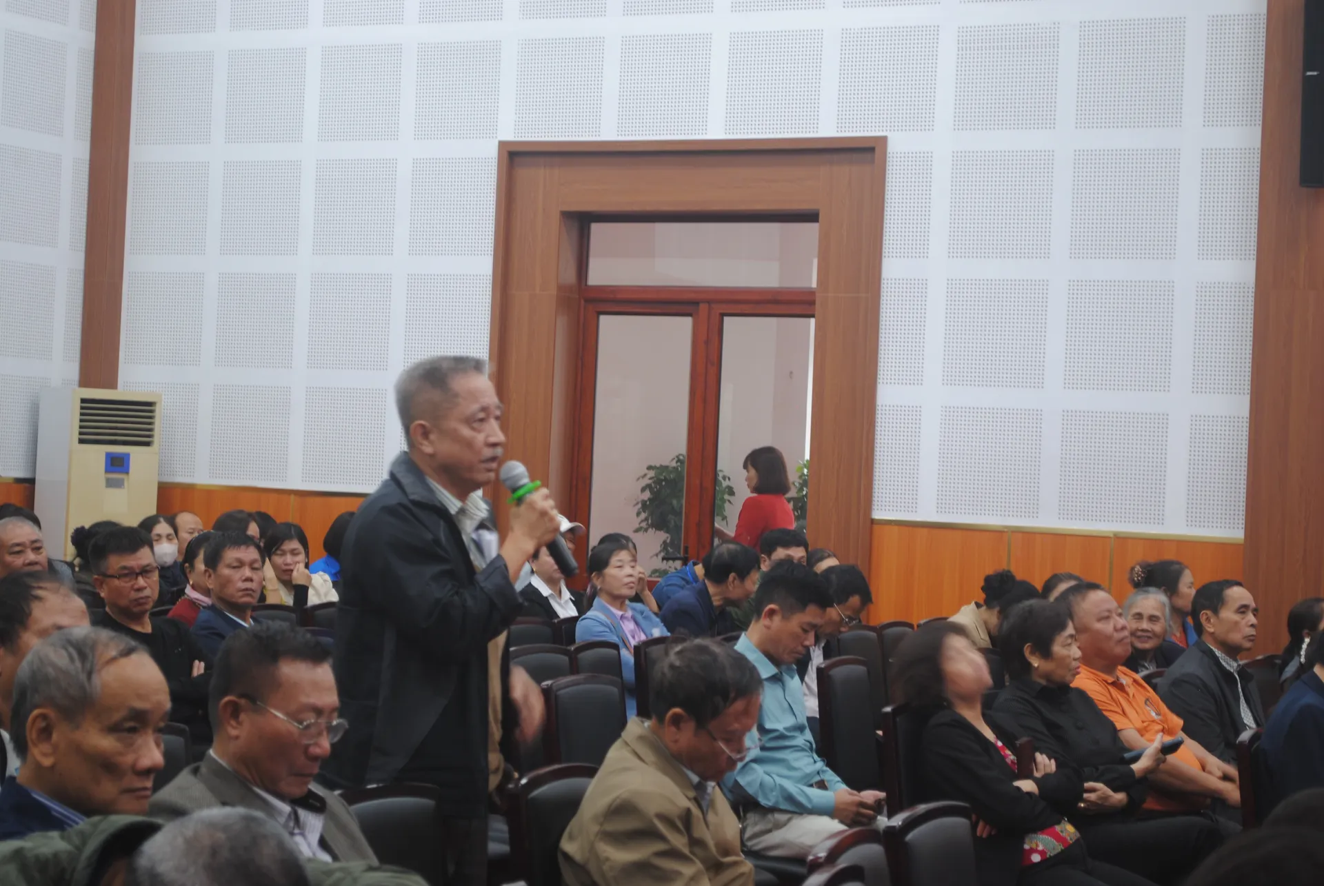 Người dân đại diện các tổ dân phố, hộ gia đình trên địa bàn phát biểu, phản ánh nhiều nội dung liên quan trực tiếp đến công tác bảo đảm an toàn giao thông, quản lý đất đai, cải cách hành chính, giải phóng mặt bằng, vệ sinh môi trường... trên địa bàn.