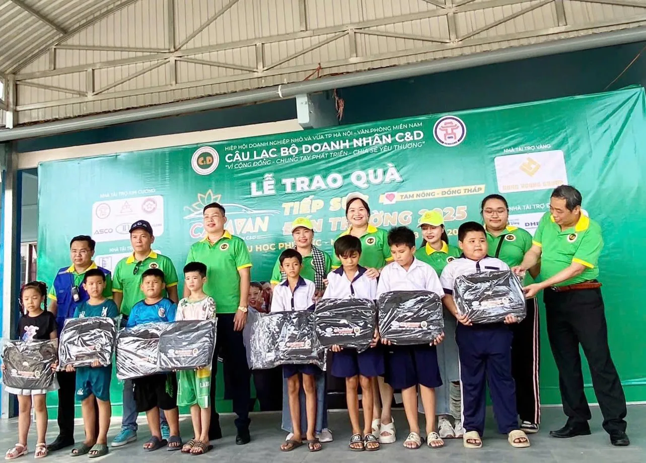 Ngày 2 và 3/8/2025, tại huyện Tam Nông – Đồng Tháp, chương trình Caravan “Tiếp sức đến trường – 2025” do CLB Doanh nhân C&D (trực thuộc HANOISME) tổ chức đã diễn ra thành công, trao tặng hơn 200 triệu đồng hỗ trợ học sinh nghèo tại hai điểm trường: Phú Đức và Bình Hàng Trung. Đây không chỉ là tên gọi của một chương trình – mà đã trở thành tinh thần, là bản sắc riêng của cộng đồng doanh nhân CLB C&D khi gieo yêu thương.
