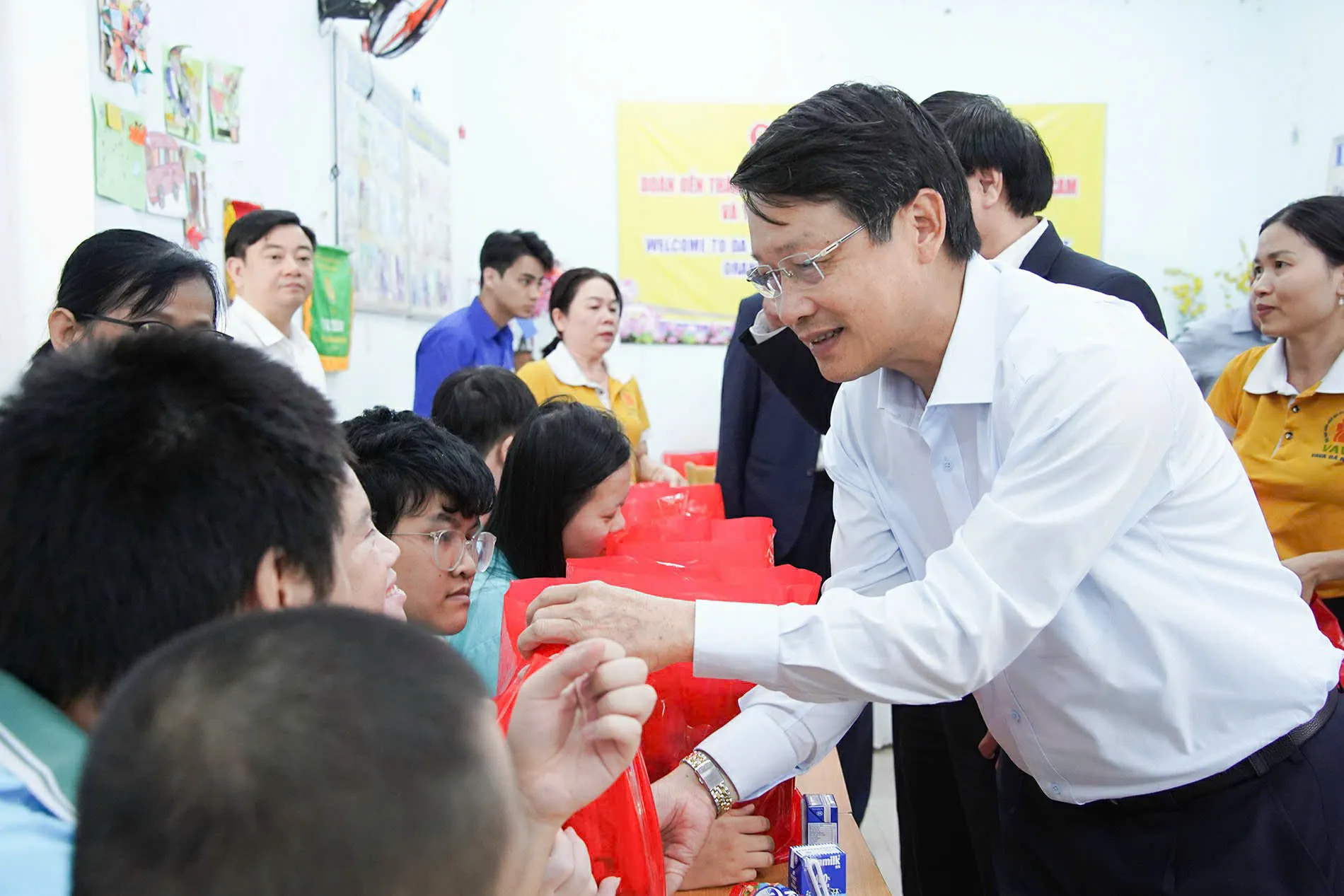 Chánh án TAND Tối cao Nguyễn Văn Quảng tặng quà chúc Tết Trung tâm Bảo trợ nạn nhân chất độc da cam và trẻ em nghèo bất hạnh thành phố.