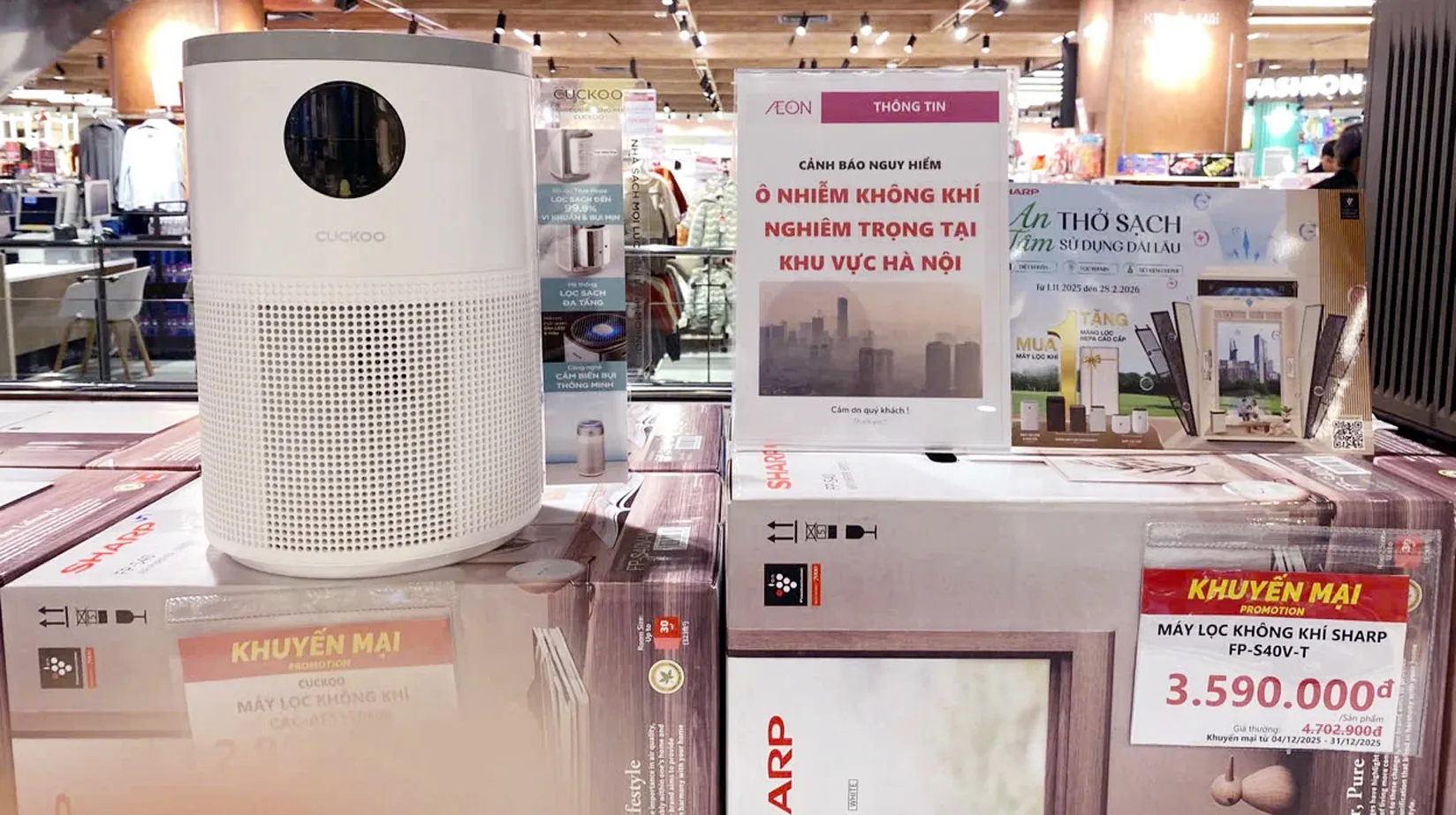 Giám đốc Trung tâm Nguyễn Kim - Chi nhánh Tràng Thi Vũ Đồng Tiến thông tin, từ cuối tháng 12/2025 đến nay mức tiêu thụ máy lọc không khí tăng 424%, so với những tháng trong năm 2025. "Nhu cầu mua máy lọc không khí đã bắt đầu từ khoảng cuối đầu tháng 12/2025. Đối với các dòng sản phẩm rẻ từ 3-5 triệu đồng, khách hàng có xu hướng mua online nhiều hơn, còn khách hàng mua sản phẩm cao cấp thường đến cửa hàng để lựa chọn" - ông Tiến thông tin.