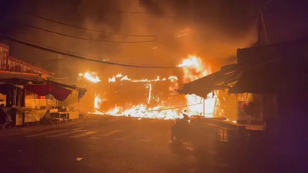 Cháy dữ dội tại chợ Nhị Thiên Đường, nhiều nhà dân chìm trong biển lửa