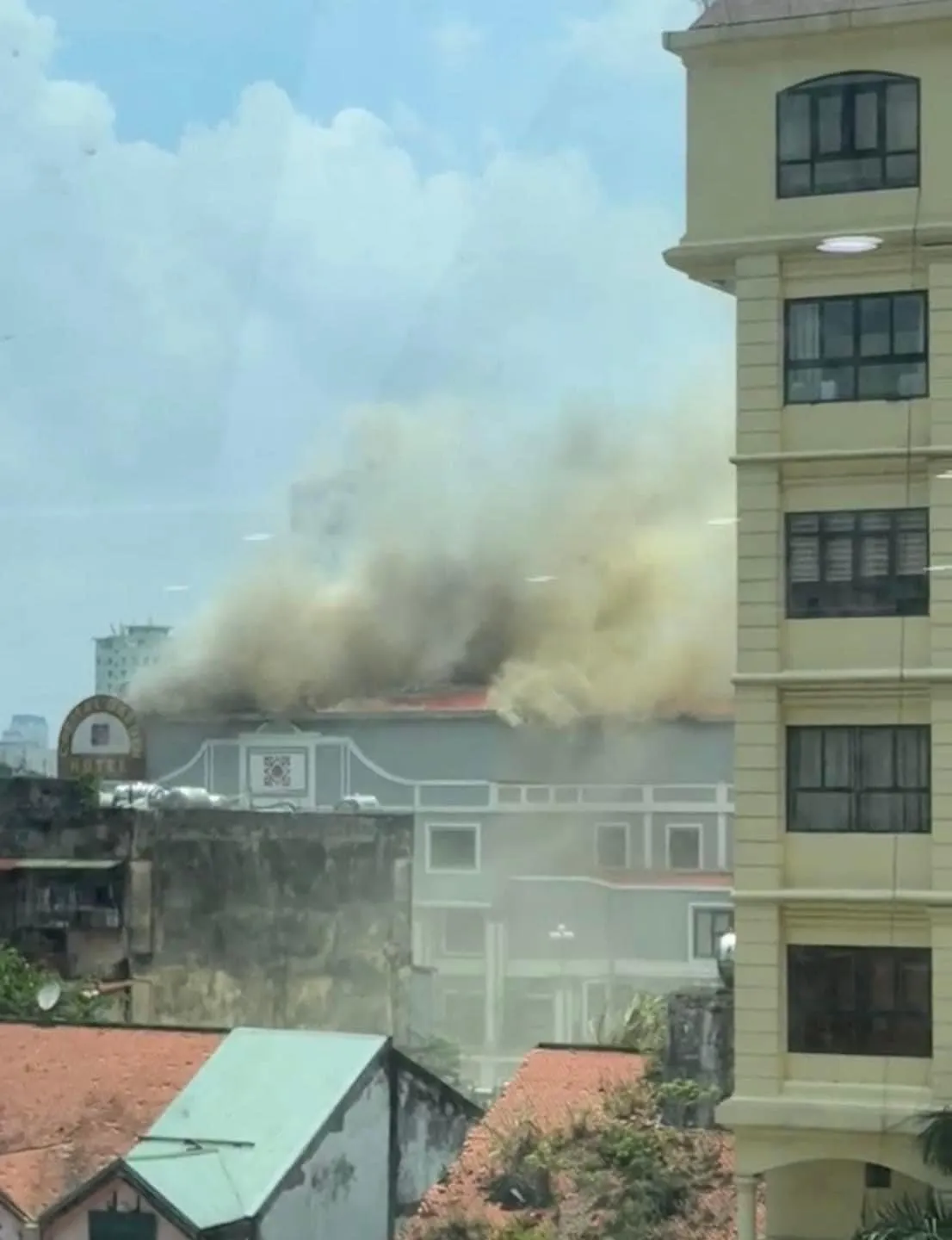 Tại hiện trường, thời điểm hiện tại, khói bốc lên từ tầng cao nhất của khách sạn 5 tầng. Theo thông tin, đây là khách sạn đang trong quá trình hoàn thiện mới đi vào hoạt động.