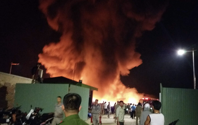 Cháy lớn tại kho hàng được cho là thuộc Công ty nhựa Tiền Phong, tại khu vực giáp ranh của phường Hưng Đạo và phường Anh Dũng, quận Dương Kinh, TP Hải Phòng.