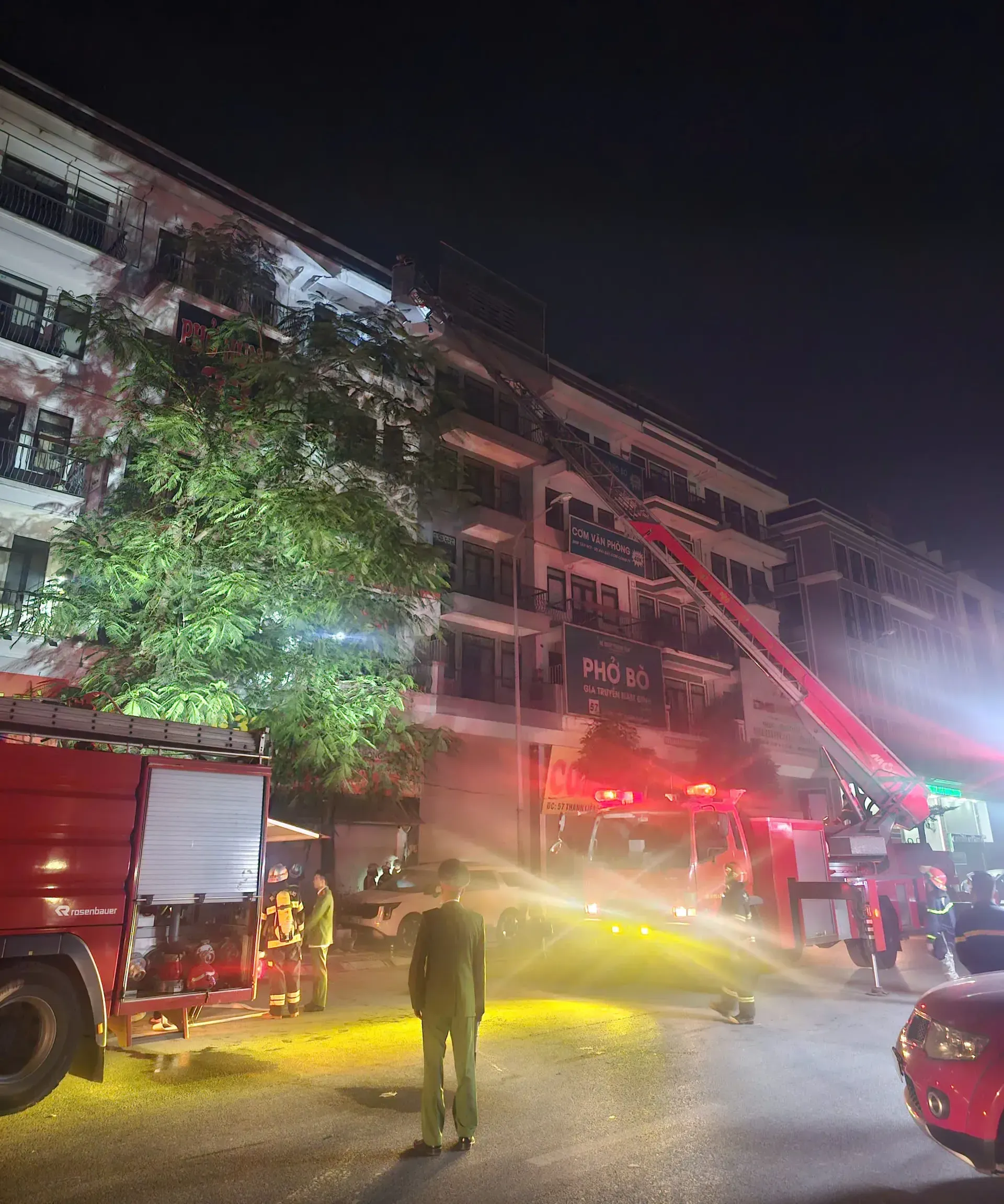 Tại hiện trường, lực lượng chức năng xác định đám cháy bùng phát từ khu vực bếp tầng 1 của ngôi nhà 5 tầng và bên trong vẫn còn nhiều người mắc kẹt. Chỉ huy chữa cháy lập tức triển khai phương án hướng dẫn những người bị nạn di chuyển lên tầng mái bằng cầu thang bộ; đồng thời triển khai đội hình chữa cháy, kịp thời khống chế không để ngọn lửa lan lên các tầng trên và các nhà lân cận.
