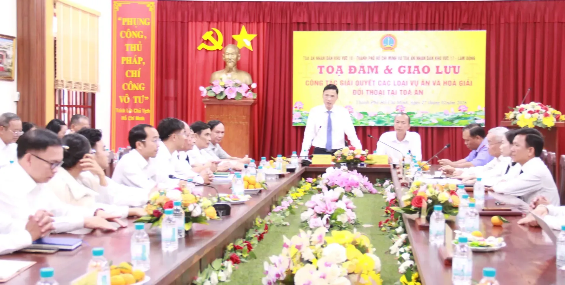 Kinhtedothi - Vừa qua, TAND khu vực 18 và TAND khu vực 17 đã phối hợp tổ chức tọa đàm chuyên đề về công tác giải quyết các loại vụ án và hoạt động hòa giải, đối thoại tại tòa, nhằm trao đổi kinh nghiệm, nâng cao chất lượng xét xử trong bối cảnh tổ chức bộ máy ngành tòa án có nhiều thay đổi sau sáp nhập.