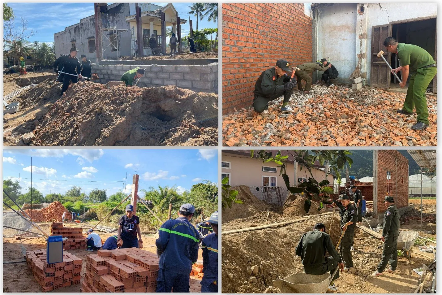 Các lực lượng Công an tỉnh Lâm Đồng tham gia hỗ trợ xây dựng nhà cho người dân.