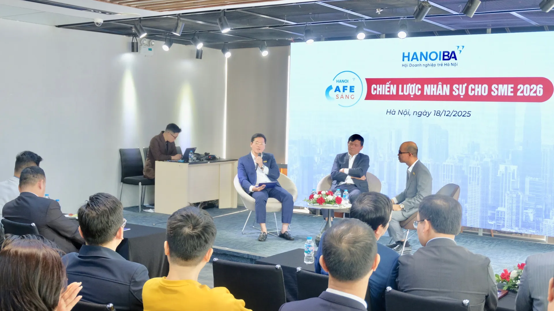 Ngày 18/12, Hội Doanh nghiệp trẻ Hà Nội (HanoiBA) tổ chức Chương trình Cafe Sáng cùng HanoiBA với chủ đề: Chiến lược nhân sự cho SME 2026. Chương trình thu hút sự tham gia của gần 100 DN thành viên HanoiBA.