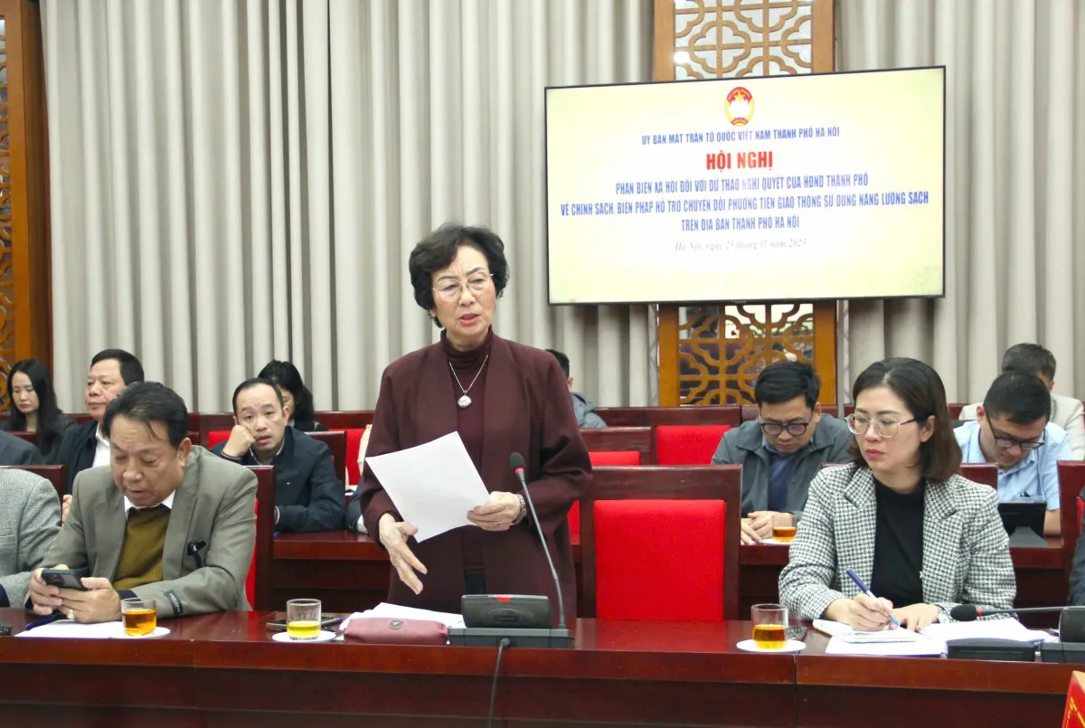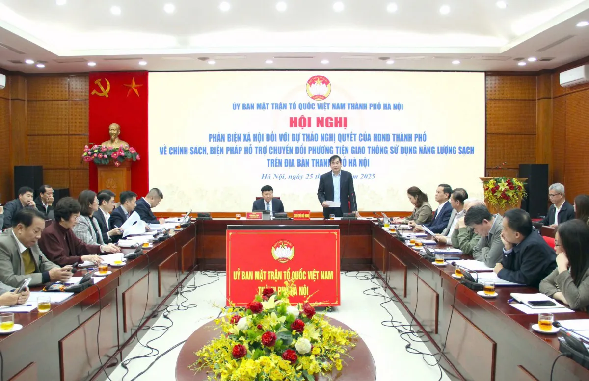 Sáng nay, 25/11, Ủy ban Mặt trận Tổ quốc (MTTQ) Việt Nam TP Hà Nội tổ chức Hội nghị phản biện xã hội đối với dự thảo Nghị quyết của Hội đồng nhân dân (HĐND) TP về chính sách, biện pháp hỗ trợ chuyển đổi phương tiện giao thông sử dụng năng lượng sạch trên địa bàn Hà Nội.